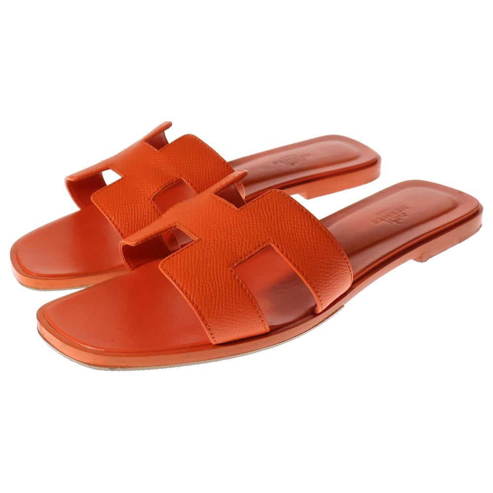 HERMES(エルメス) オラン Hロゴ レザーフラットサンダル オレンジ 202272Z レディース