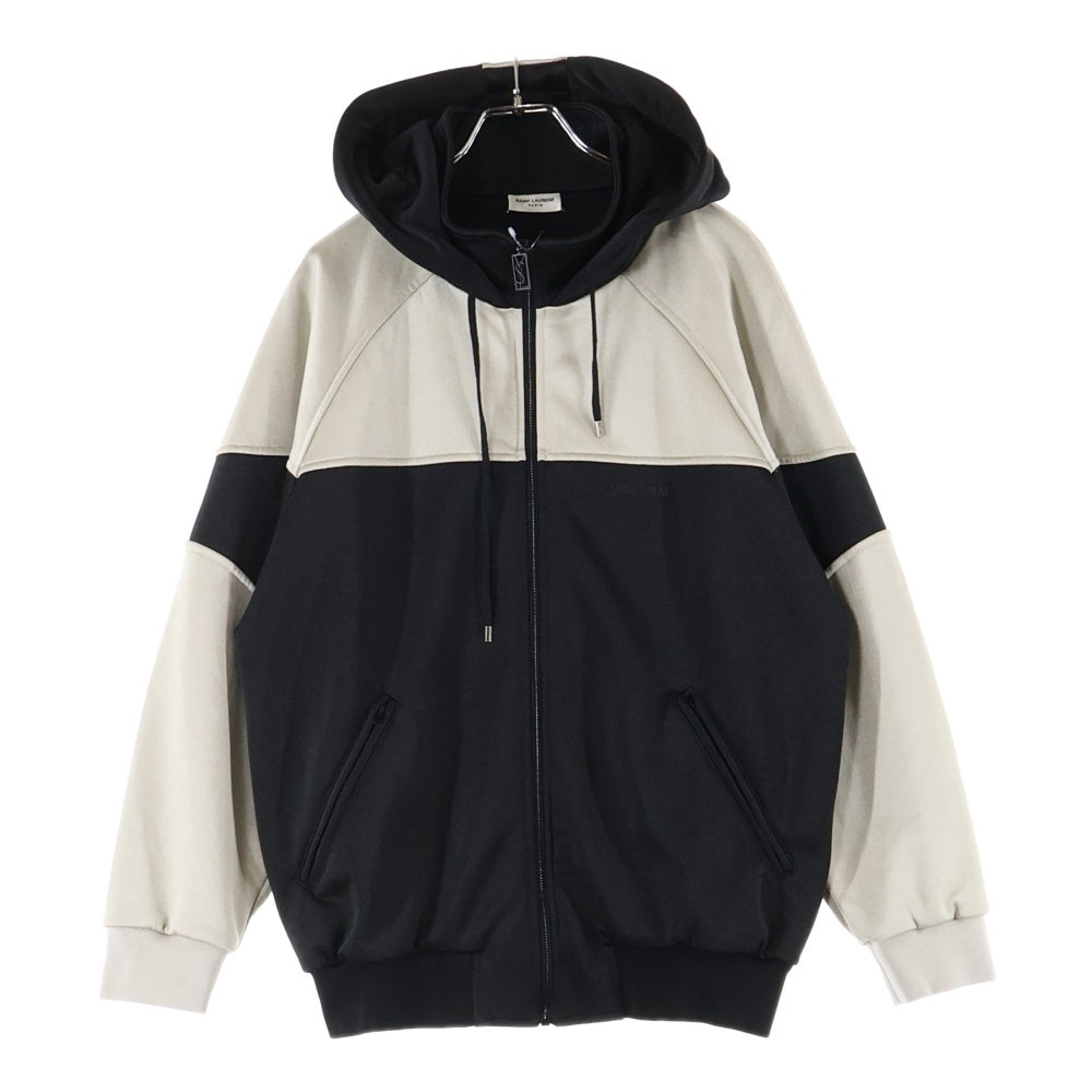 SAINT LAURENT PARIS(サンローランパリ) ロゴ刺繍 バイカラー ジップアップパーカー フーディー ブラック/ホワイト 754100 Y37IT