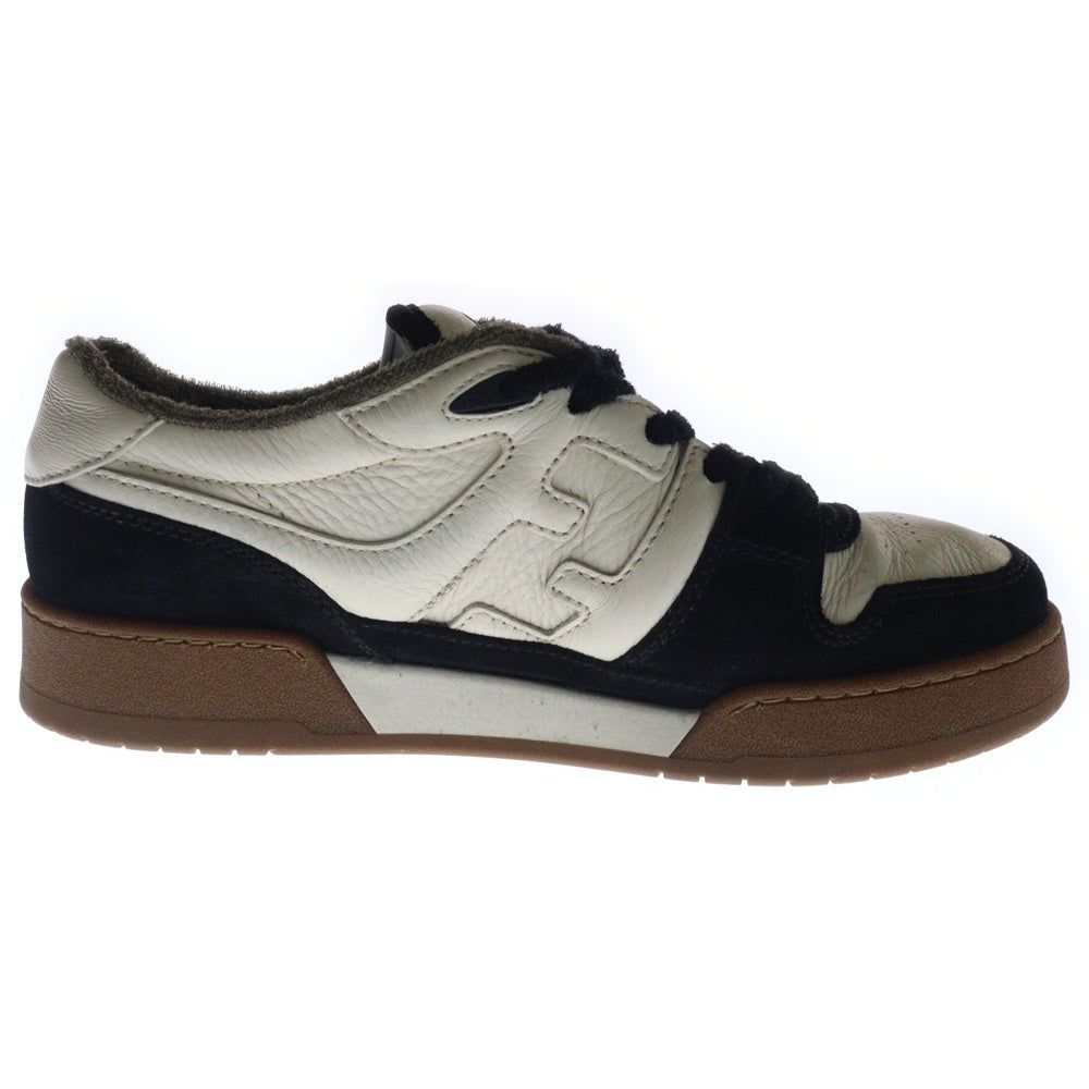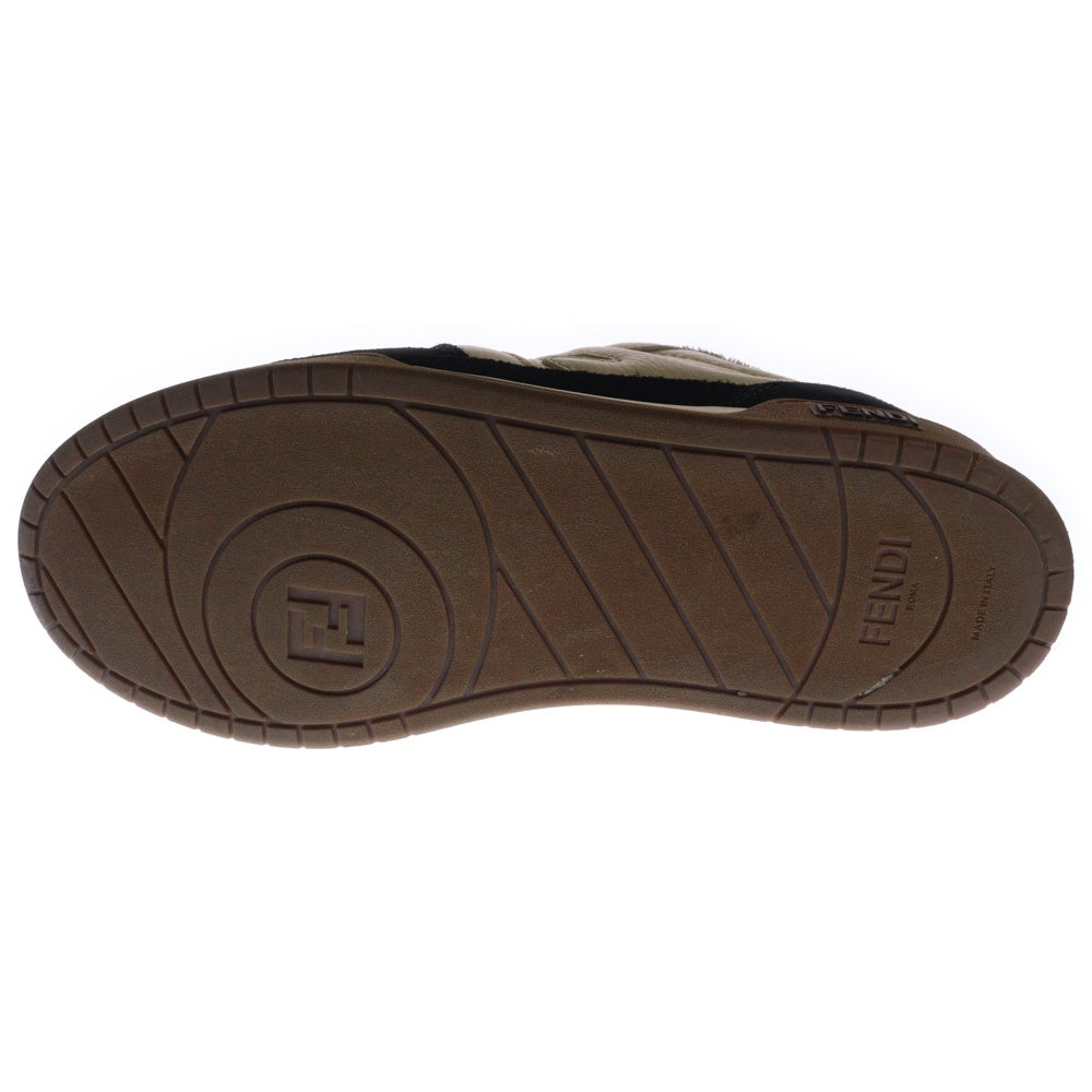 FENDI(フェンディ) FFステッチデザイン ブラックスエード マッチ レザー ローカットスニーカー ブラウン 7E1493
