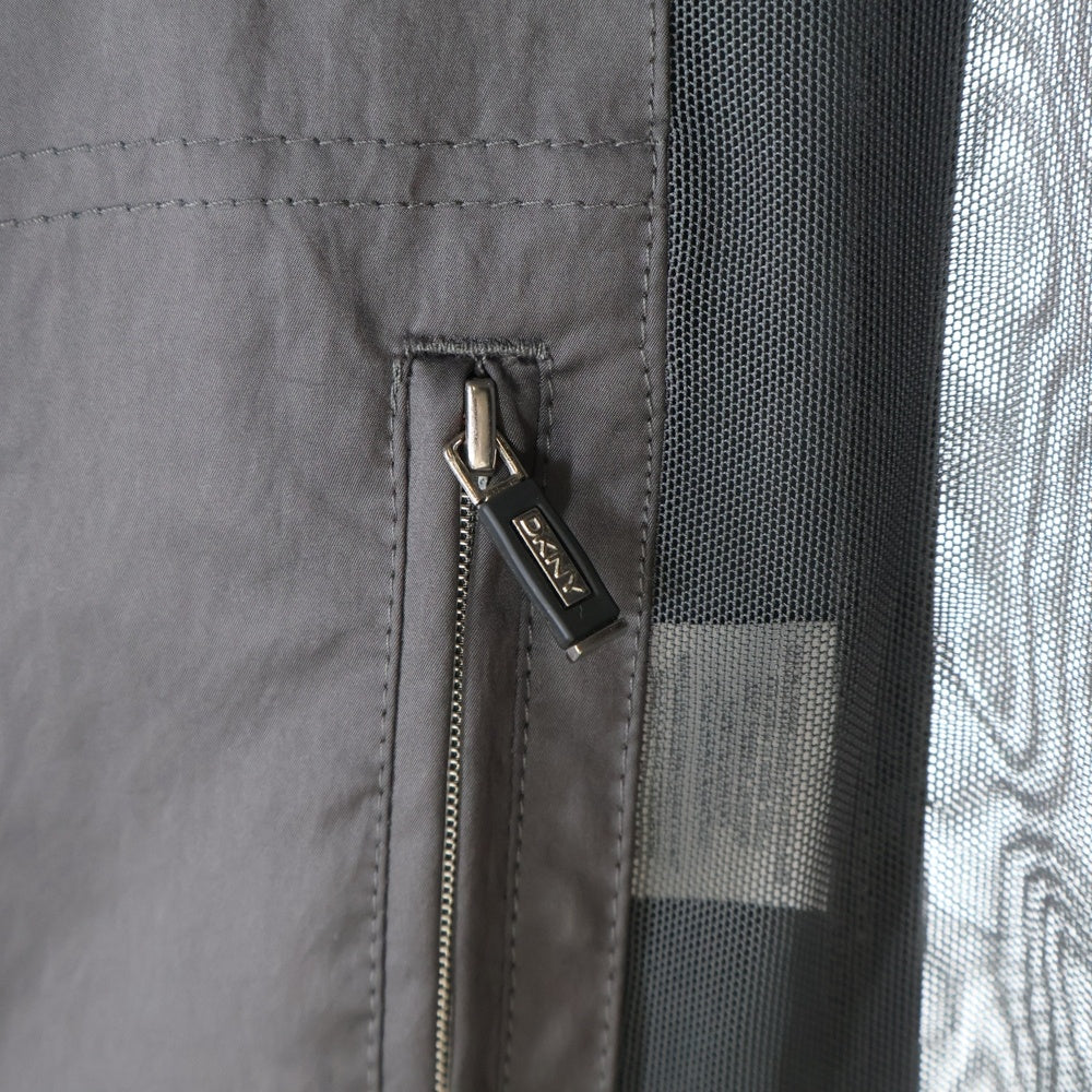 DKNY(ダナキャラン) 切り替えシースルースタンドカラーナイロンジャケット レディース グレー