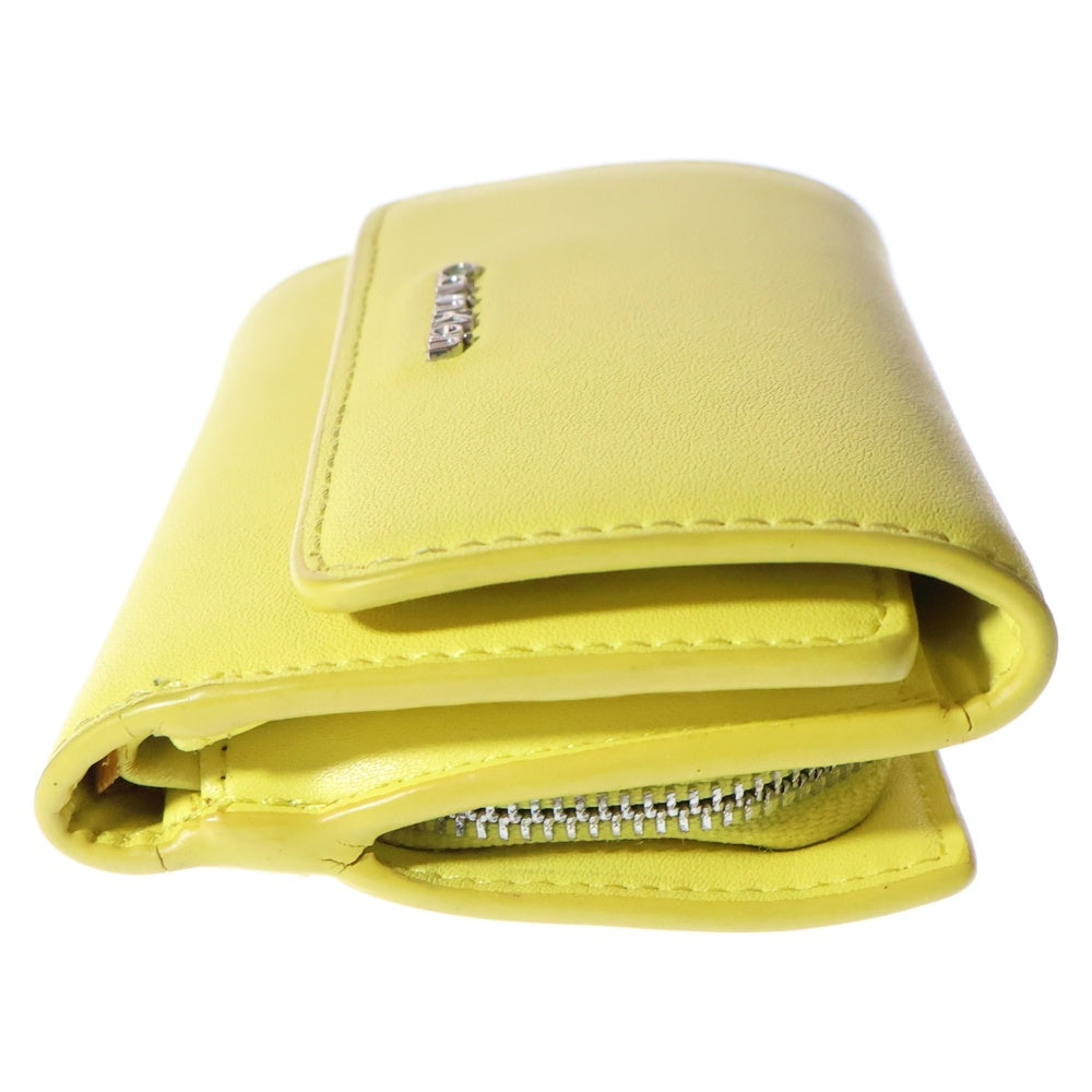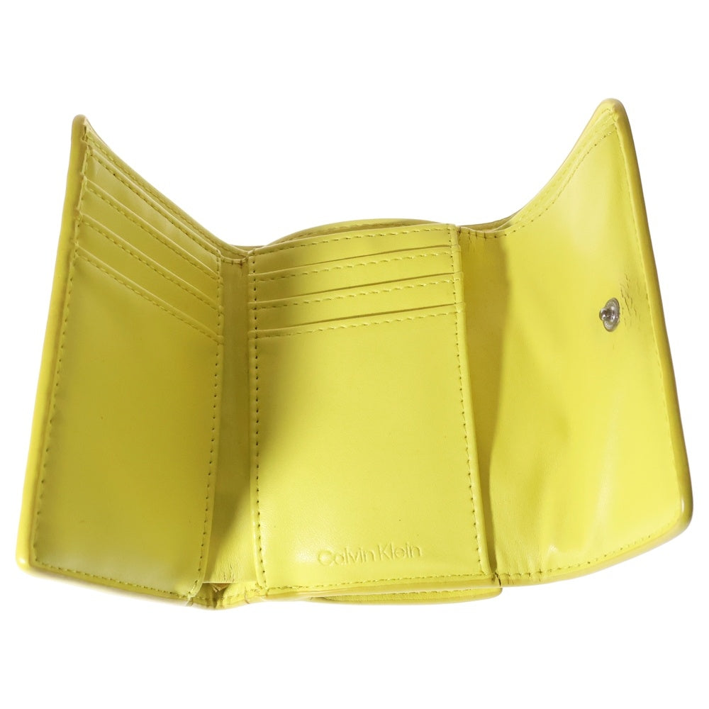 Calvin Klein(カルバンクライン) ロゴプレート レザー コンパクトウォレット 三つ折り財布 シルバー金具 イエロー