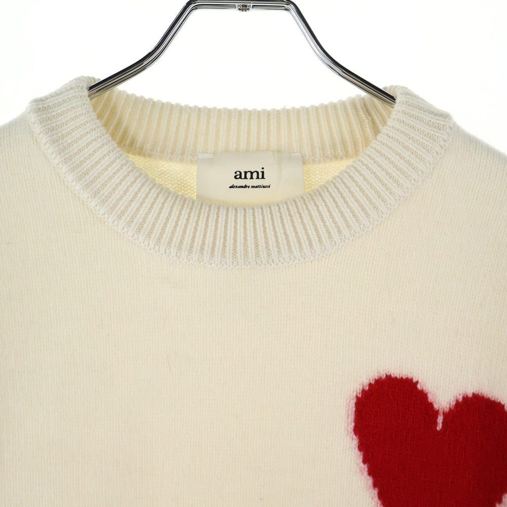 ami paris(アミパリス) ハートロゴ クルーネック ロングスリーブ 長袖ニット セーター ホワイト UKS002.018