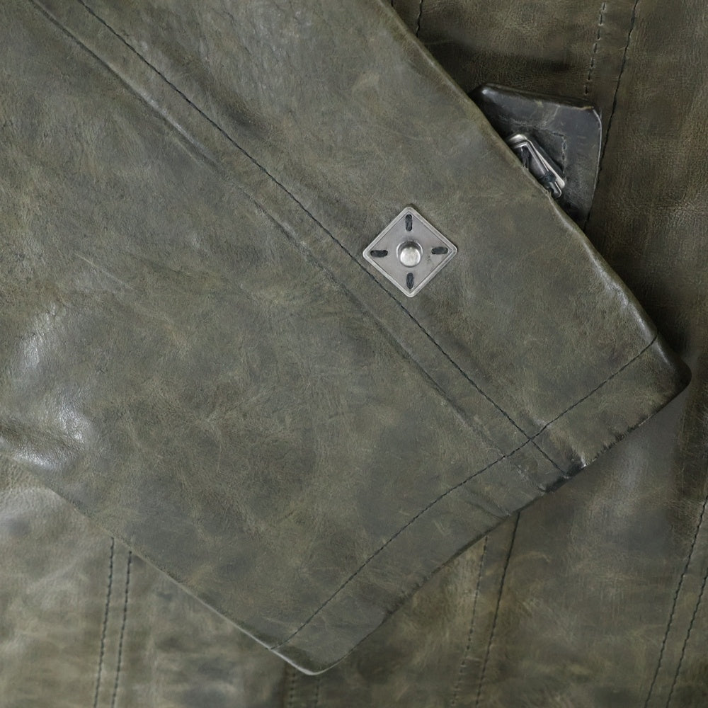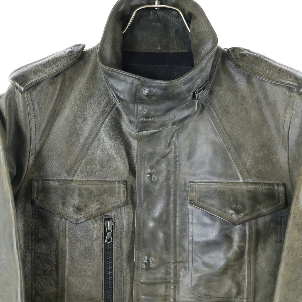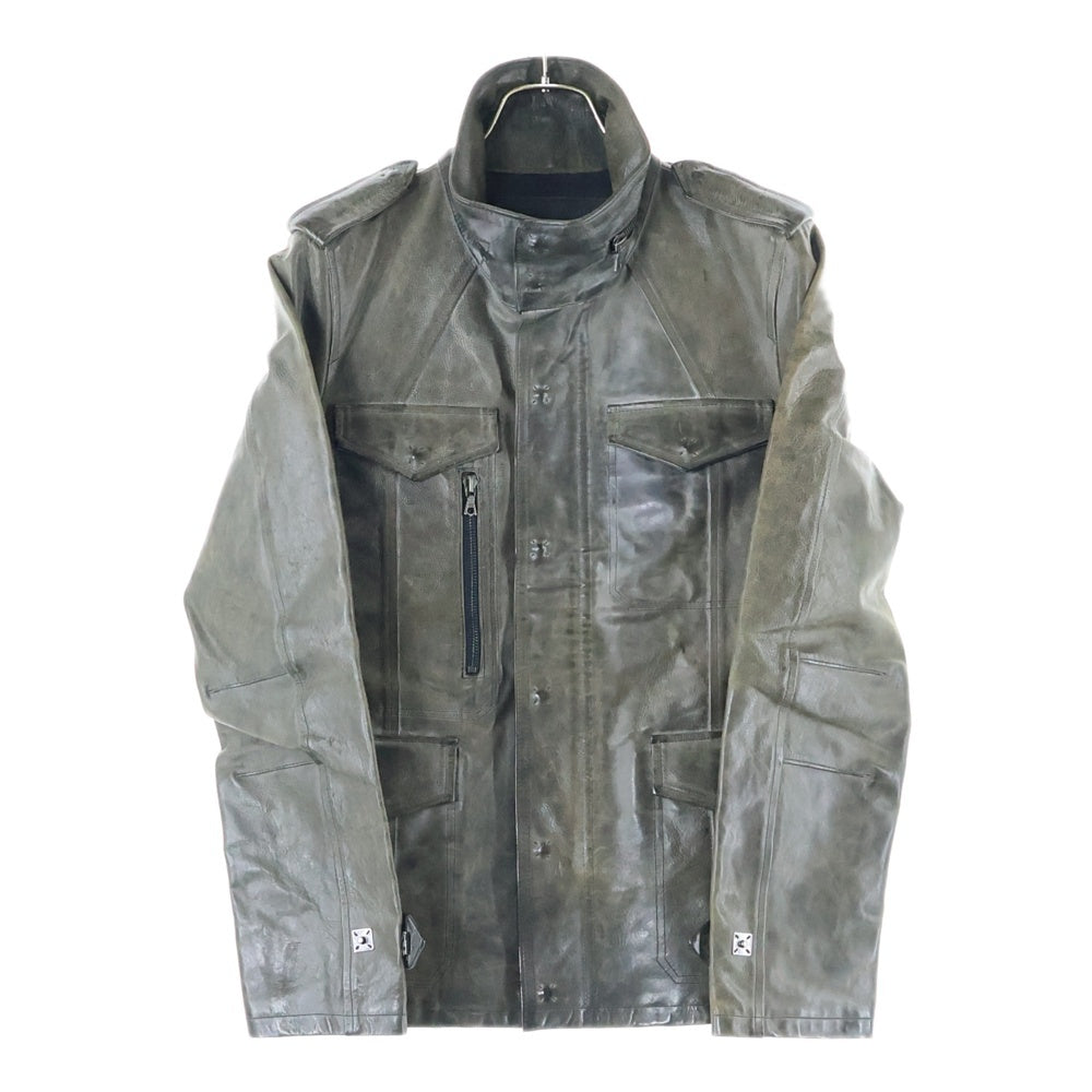 ISAMU KATAYAMA BACKLASH(イサムカタヤマバックラッシュ) カウレザー 牛革 ミリタリーデザイン ジップアップレザージャケット グレー