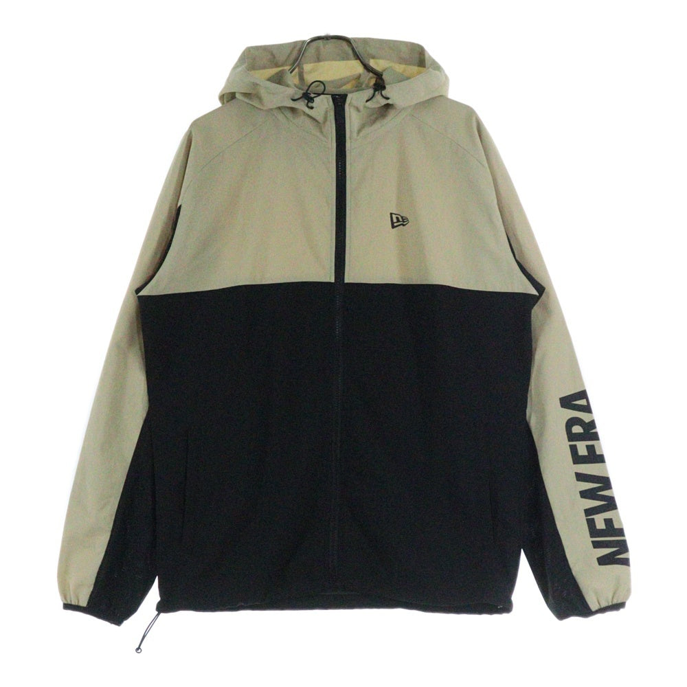 NEW ERA(ニューエラ) ロゴプリント ツートーン ジップアップパーカー ベージュ/ブラック