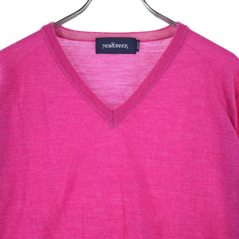 NEWYORKER(ニューヨーカー) Vネック ウール長袖カーディガン ピンク 11-51-9520