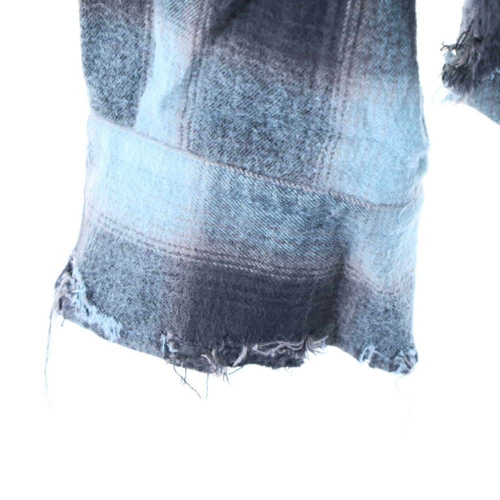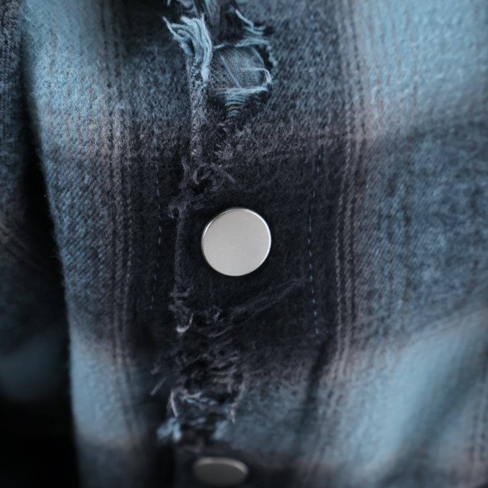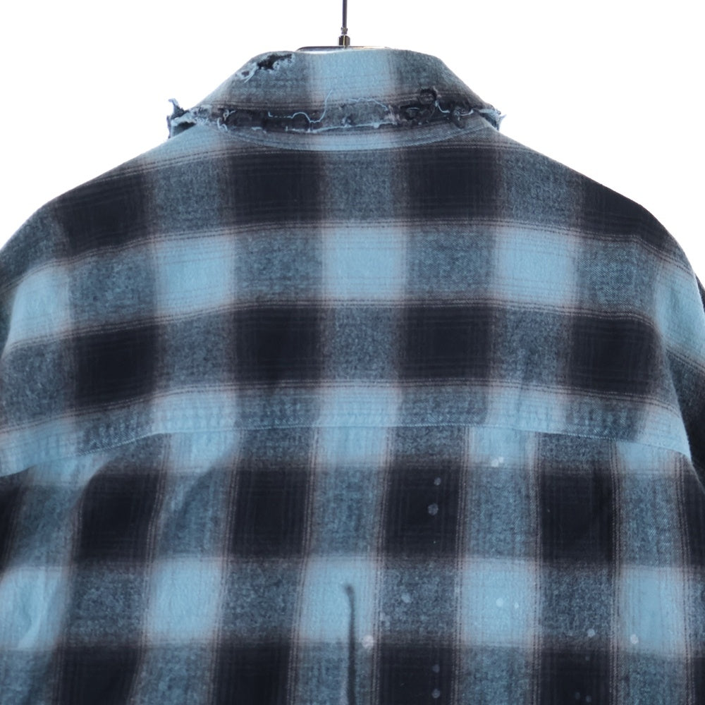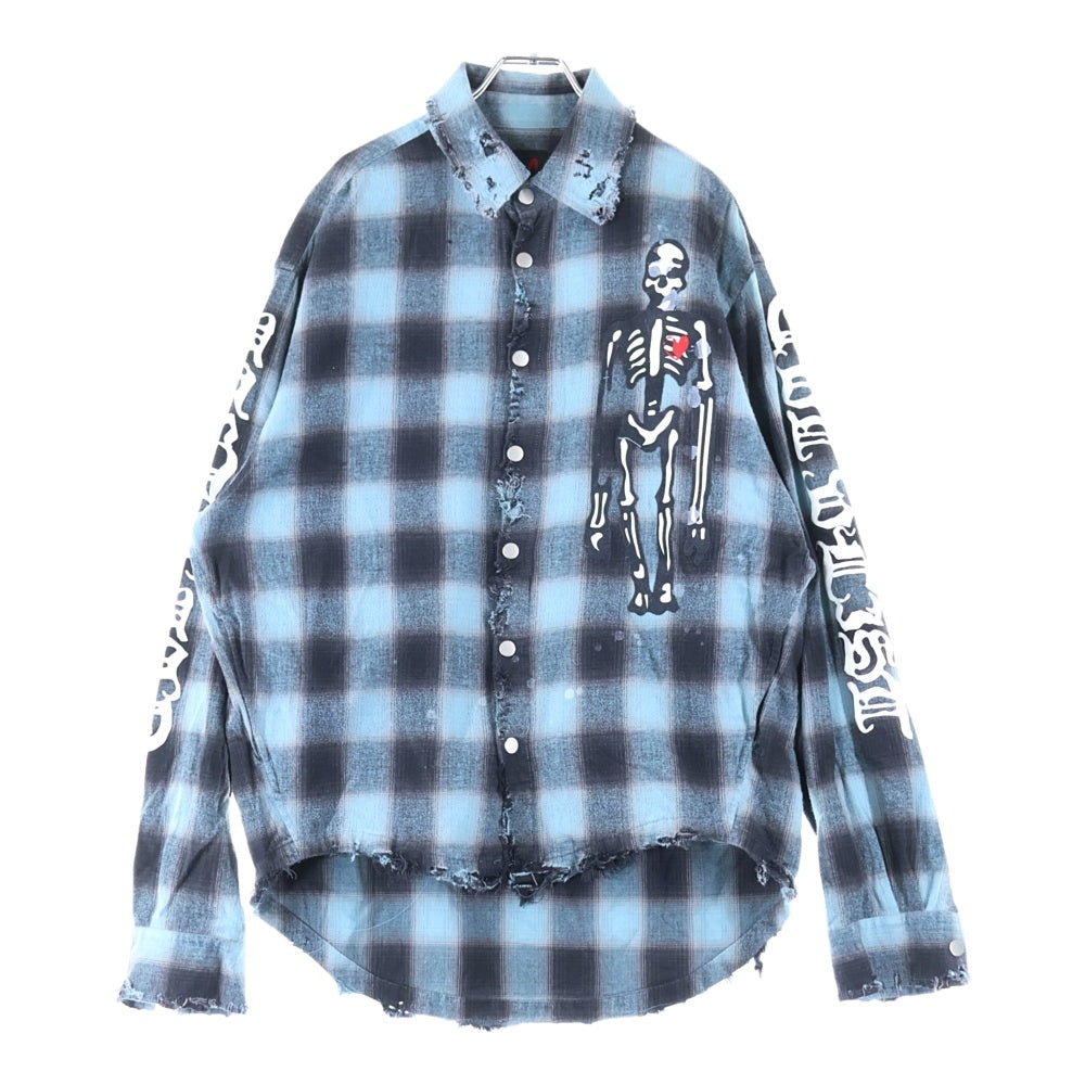 cvtvlist(カタリスト) ダメージ加工 スカル オンブレチェック 長袖シャツ ブルー/ブラック 2401100201