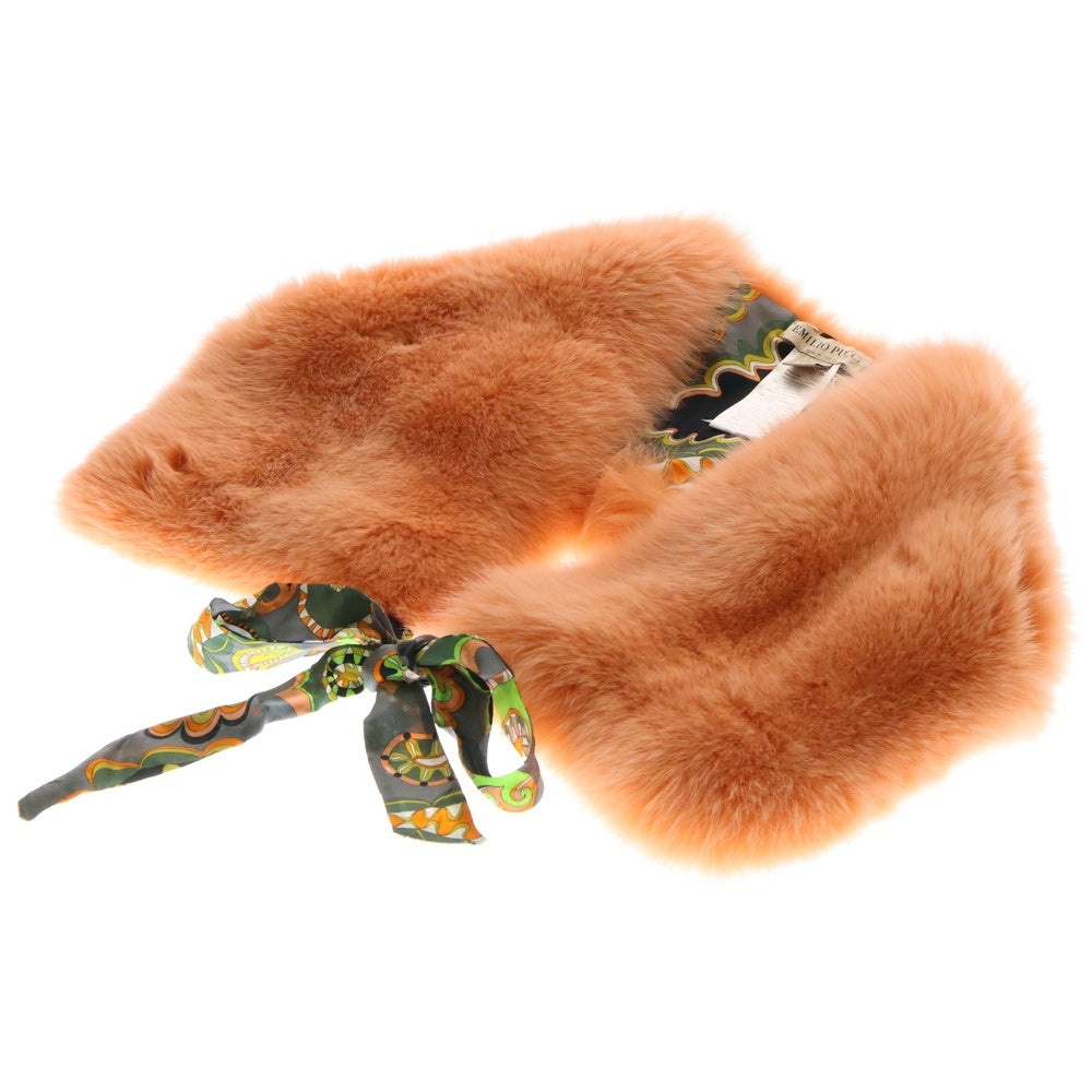EMILIO PUCCI(エミリオプッチ) 裏地ペイズリー スカーフ ファー オレンジ レディース