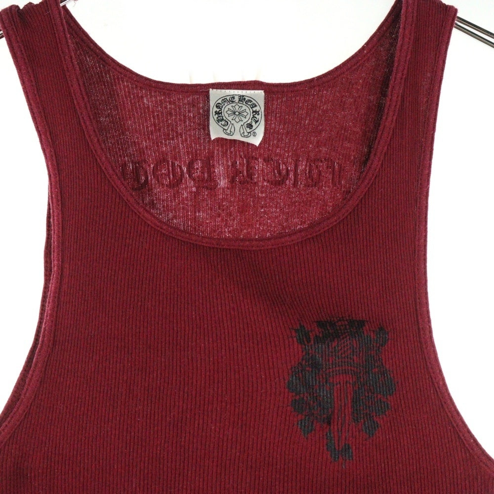 CHROME HEARTS(クロムハーツ) OLD 限定 ロサンゼルス ダガー バックホースシュープリント リブタンクトップ ノースリーブカットソー エンジ