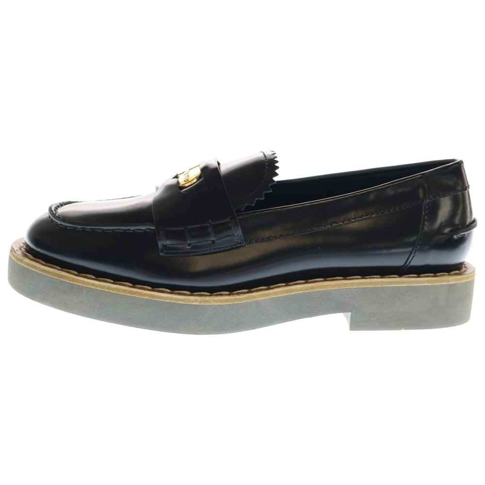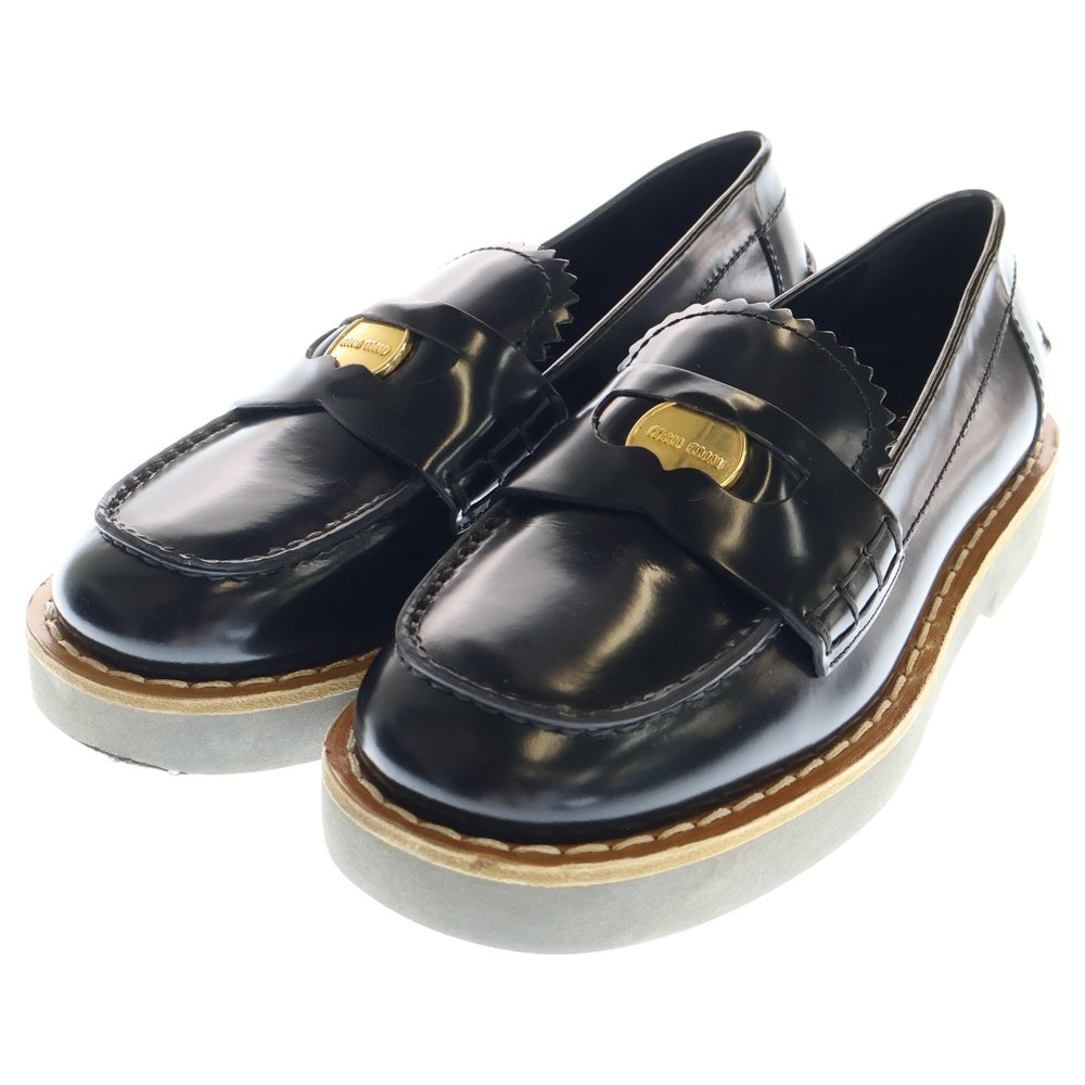 miumiu(ミュウミュウ) ブラッシュドレザー コイン ペニーローファー ローカットシューズ ブラック レディース