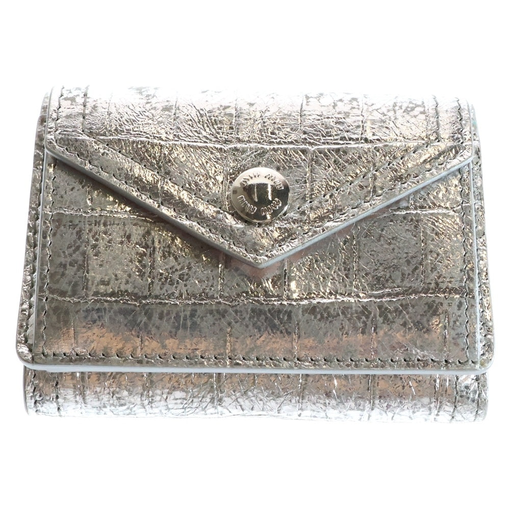 miumiu(ミュウミュウ) 型押し 三つ折り財布 コンパクトウォレット コインケース シルバー レザー