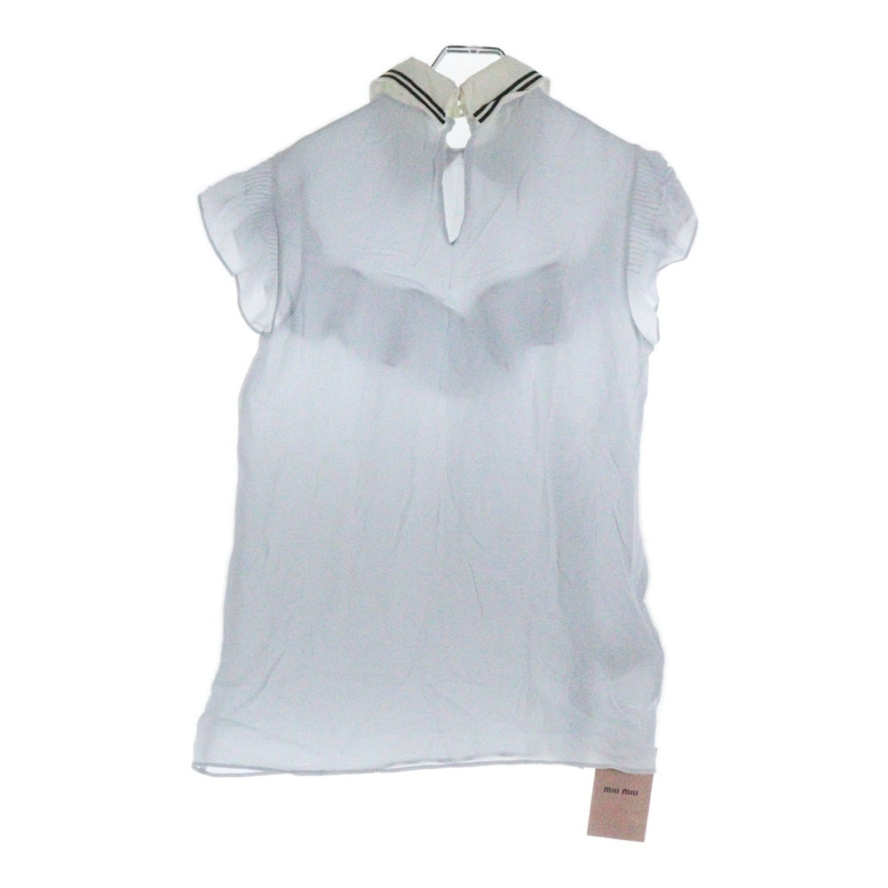 miumiu(ミュウミュウ) 17SS セーラーデザイン ギャザースリーブ シルク ブラウス トップス ライトブルー レディース MT1333
