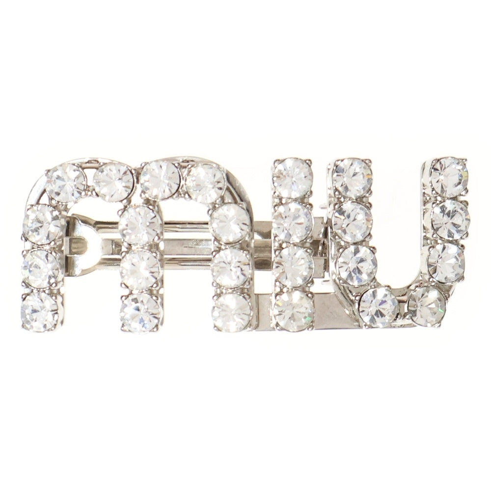 miumiu(ミュウミュウ) ラインストーン付ロゴバレッタ ヘアクリップ シルバー レディース 5JF082