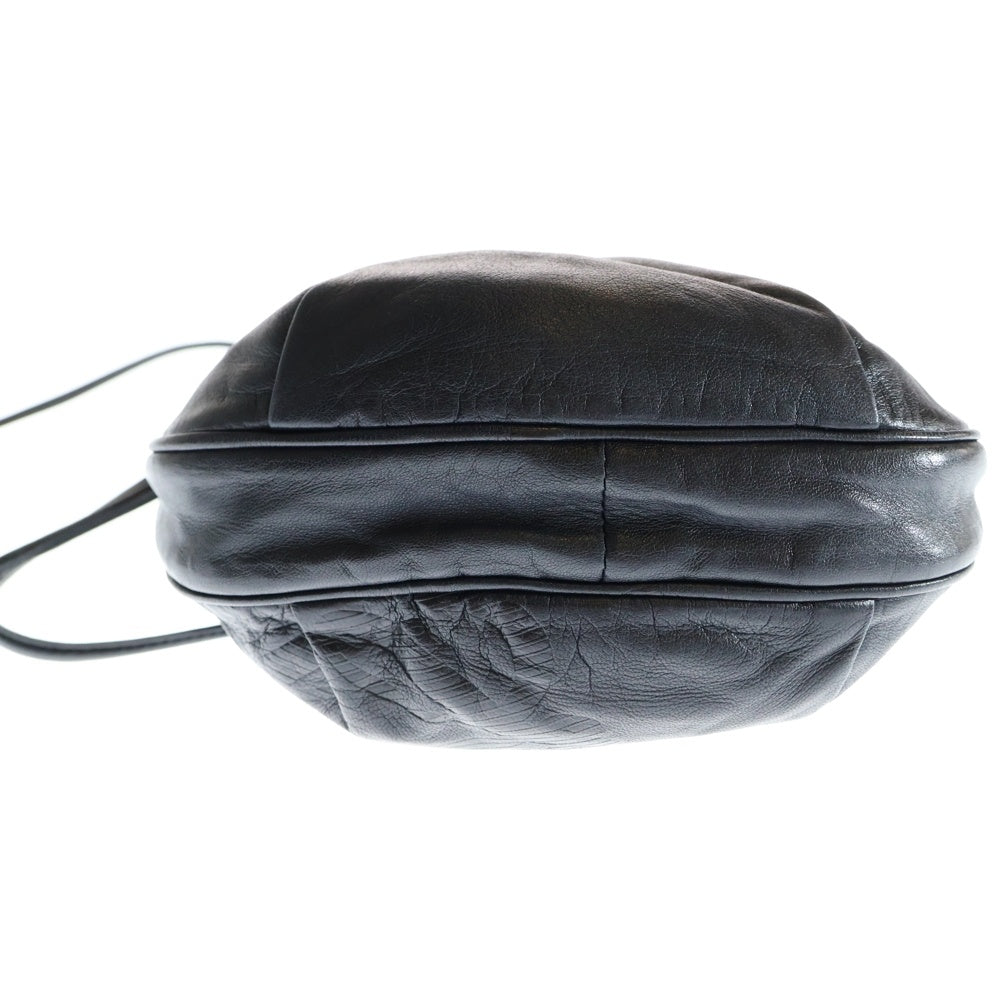 PRADA(プラダ) アナグラムロゴ エンボス ラムスキン レザー 巾着 ショルダーバッグ ポーチ ネイビー