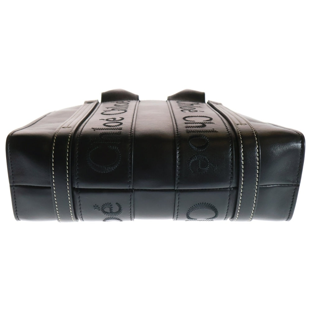 Chloe(クロエ) WOODY ウッディ スモール ロゴ刺繍 レザー 2WAY ハンド ショルダー トートバッグ シルバー金具 ブラック CHC23US397