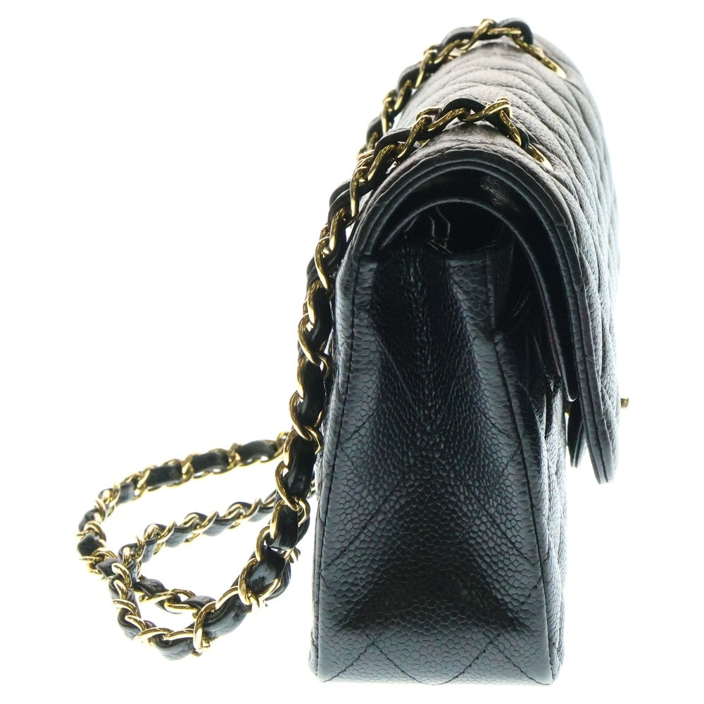 CHANEL(シャネル) マトラッセ23 Wフラップ Wチェーンショルダーバッグ ハンドバッグ ブラック ゴールド金具 キャビアスキン