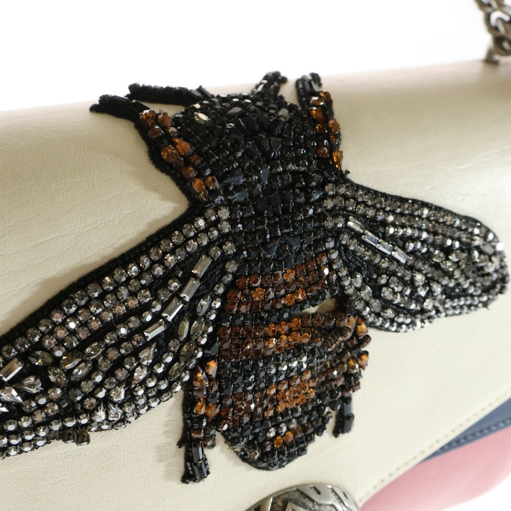 GUCCI(グッチ) ディオニュソス クリスタルビー アップリケ チェーンショルダーバッグ ホワイト×レッド シルバー金具 レザー 403348