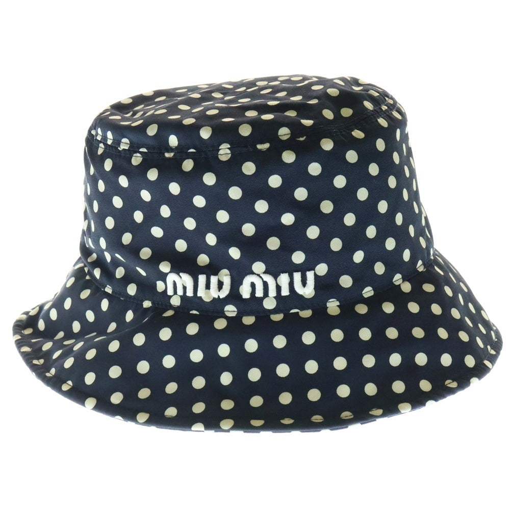 miumiu(ミュウミュウ) バケットハット ロゴ ドット柄 ネイビー キャンバス 5HC196