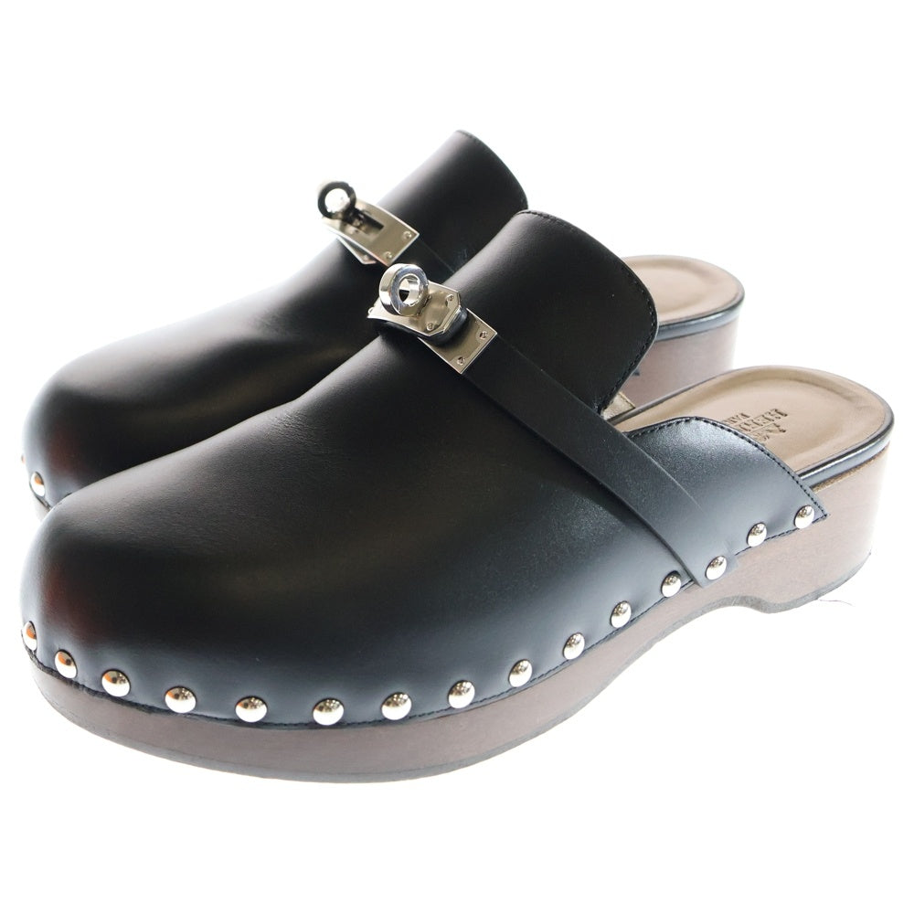 HERMES(エルメス) カルロッタ ケリー レザー サボ サンダル ローカットシューズ ミュール シルバー金具 ブラック レディース