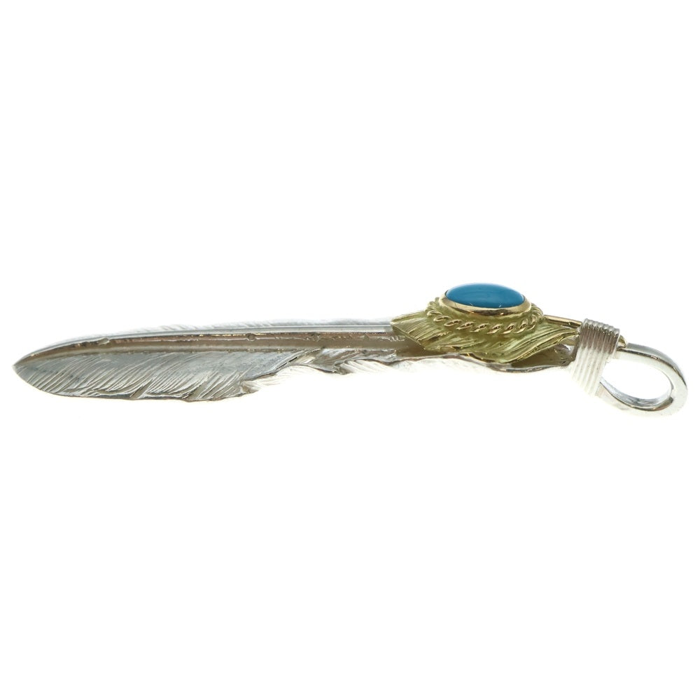 goro's(ゴローズ) 【新品】【現行】上金金縄ターコイズ特大フェザー 左向き ペンダントトップ シルバー/ゴールド