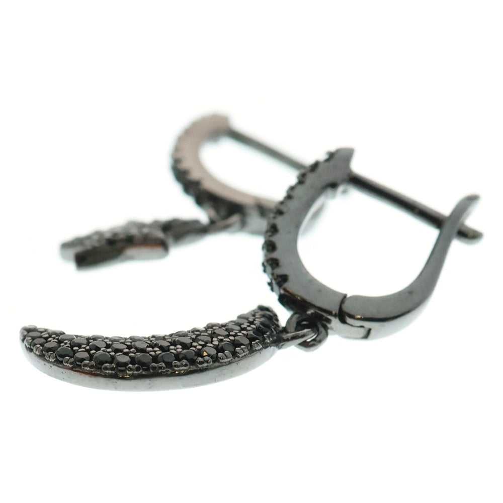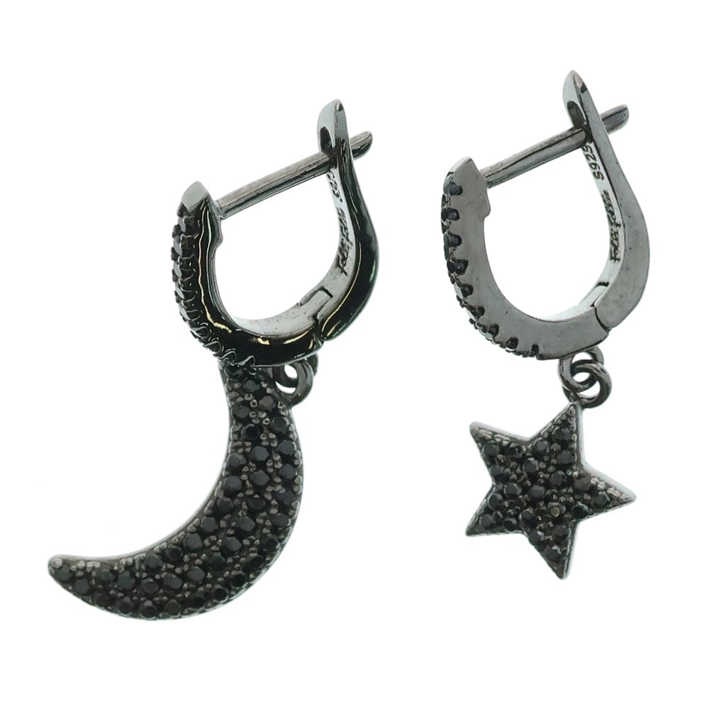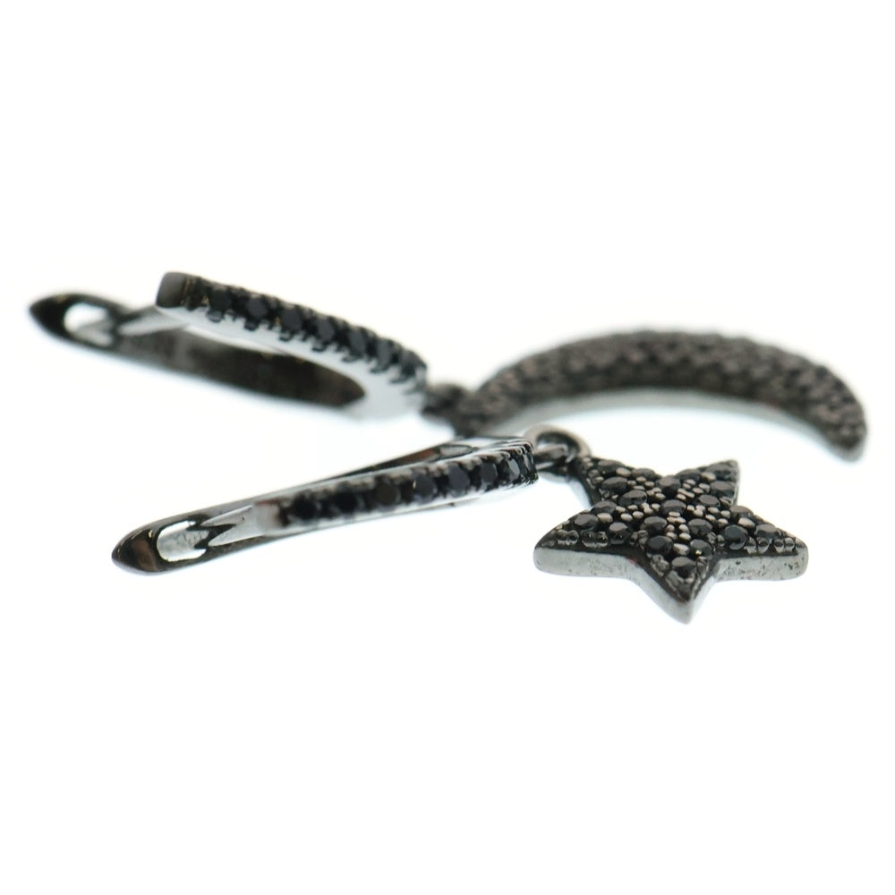 Folli Follie(フォリフォリ) スター ムーン 星 月 ラインストーン フープ ドロップピアス セット ガンメタ/ブラック