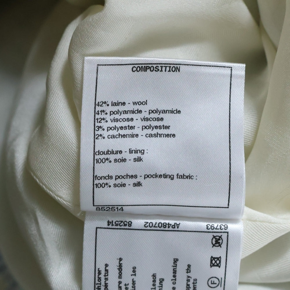 CHANEL(シャネル) 22AW ココマークボタン ラメ スパンコール ファンシーツイード チェック総柄 テーラードカラー 4B ロングジャケット コート ライトブルー P73383V64905