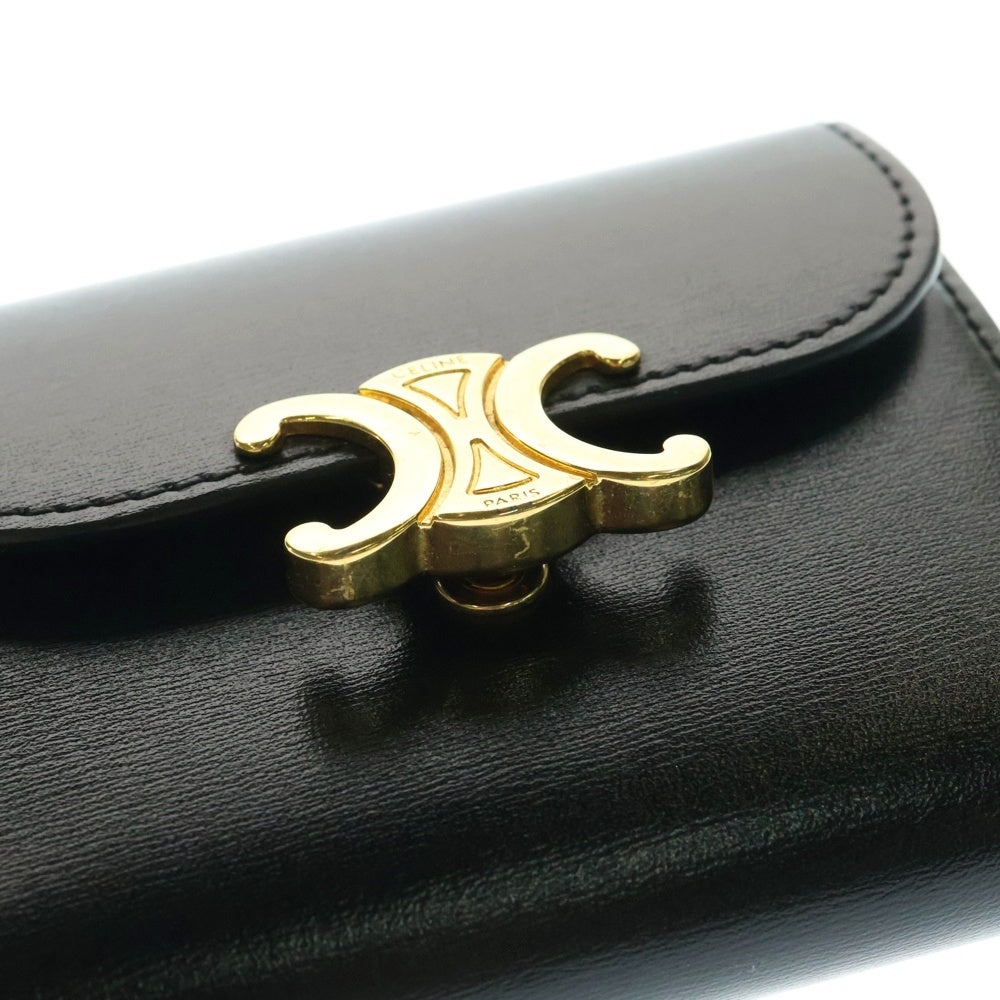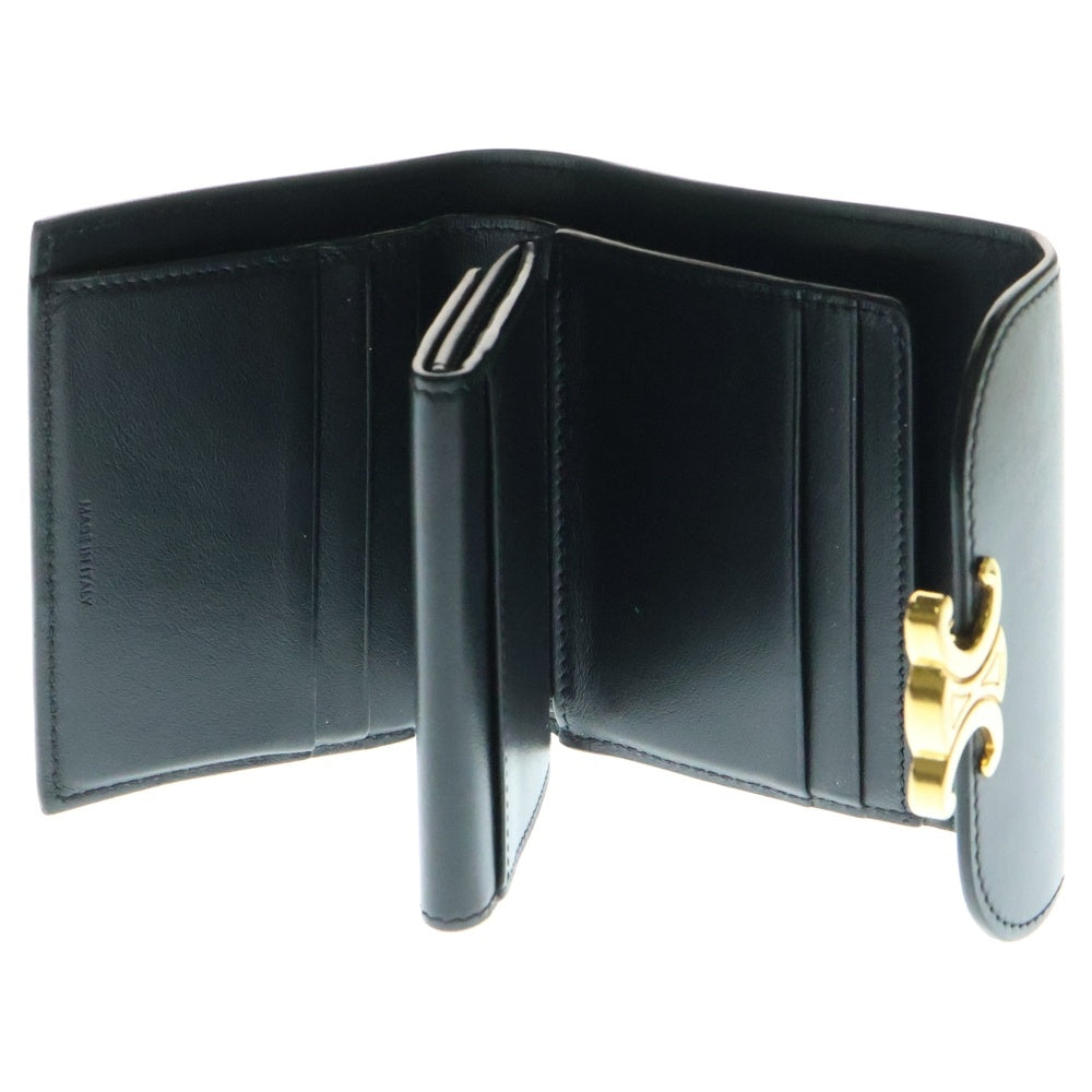 CELINE(セリーヌ) トリオンフ コンパクトウォレット 三つ折り財布 コインケース ブラック ゴールド金具 レザー
