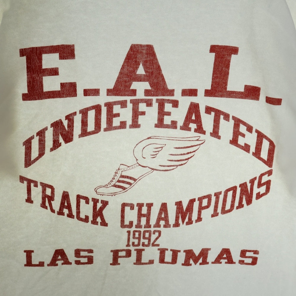 CHAMPION(チャンピオン) 90S VINTAGE USA製 ウィングフット 染み込みプリント クルーネック 半袖カットソー ヴィンテージTシャツ ホワイト