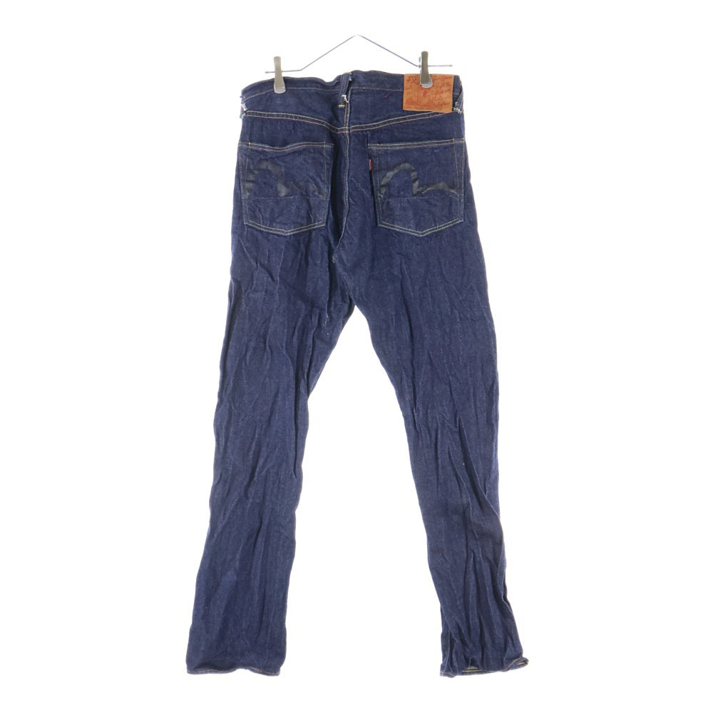 EVISU(エビス) 黒カモメ ボタンフライ レギュラー ストレート デニム パンツ ネイビー