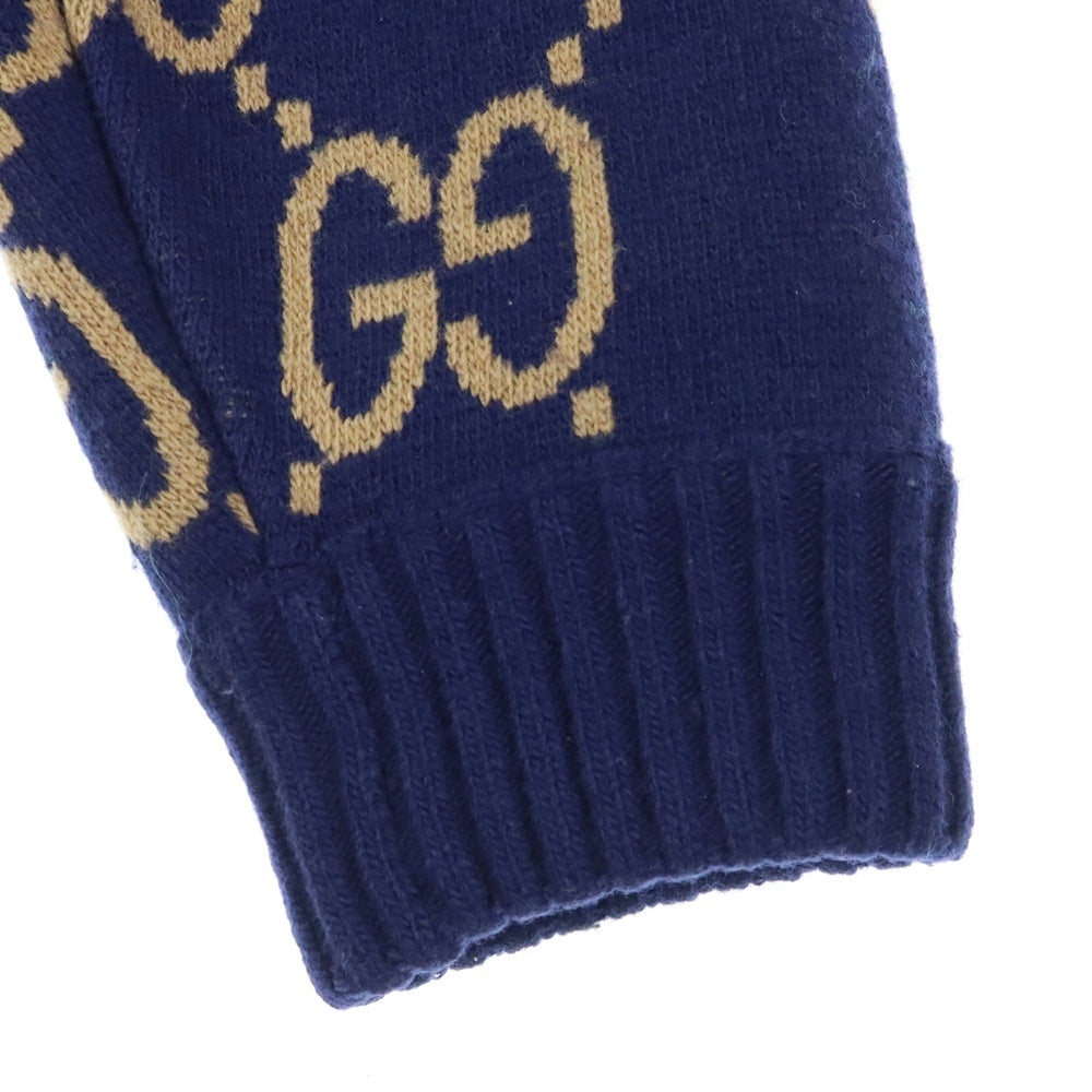 GUCCI(グッチ) GG総柄 チェック リバーシブル ニットカーディガン ネイビー/ブラウン 696576