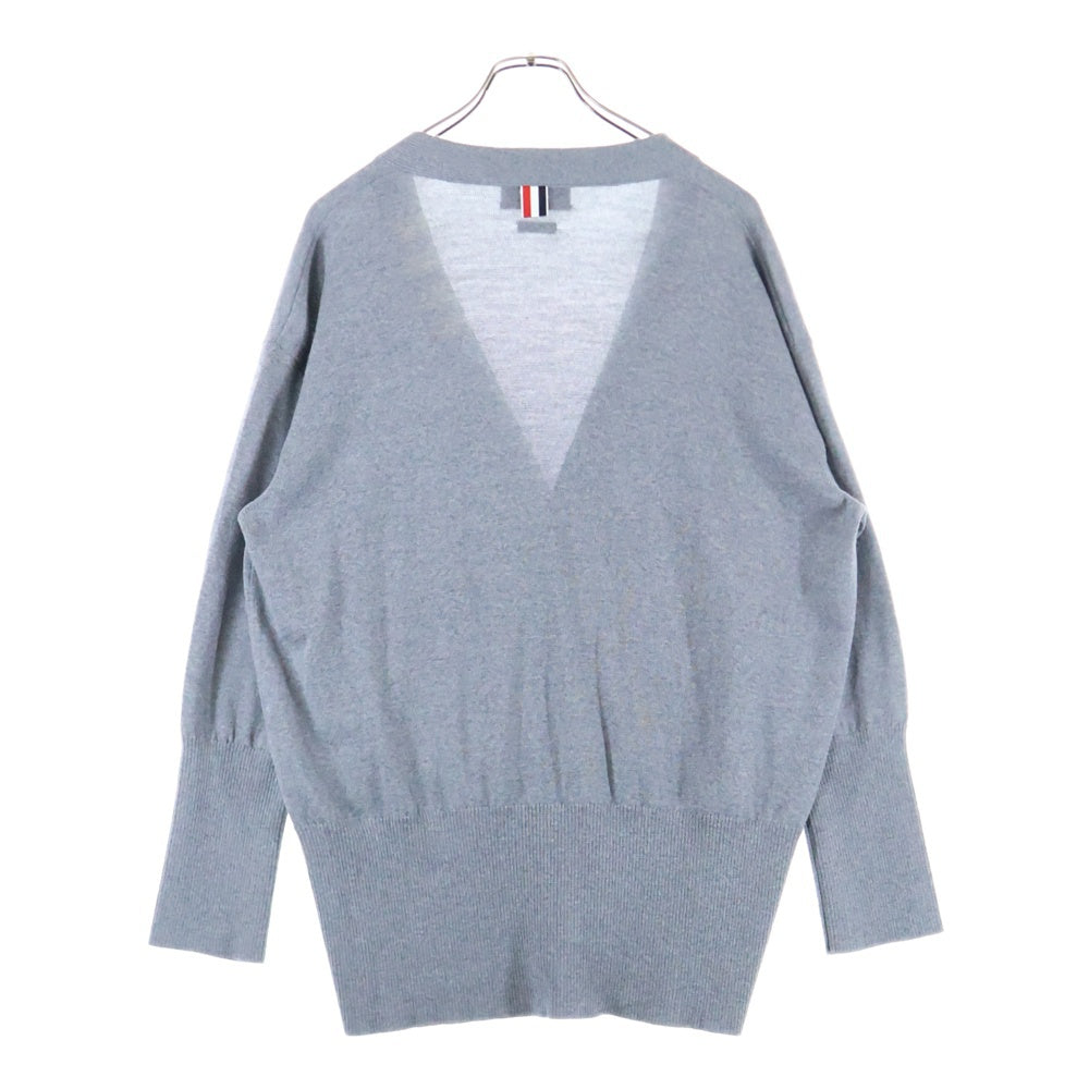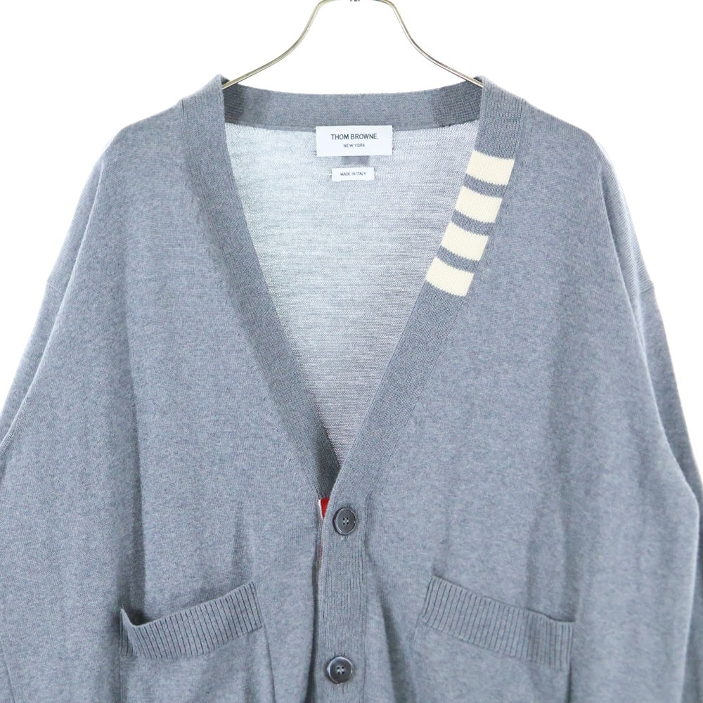 THOM BROWNE(トムブラウン) Vネック トリコロール ウール ニット オーバーサイズ カーディガン グレー MKC335A-Y1002055