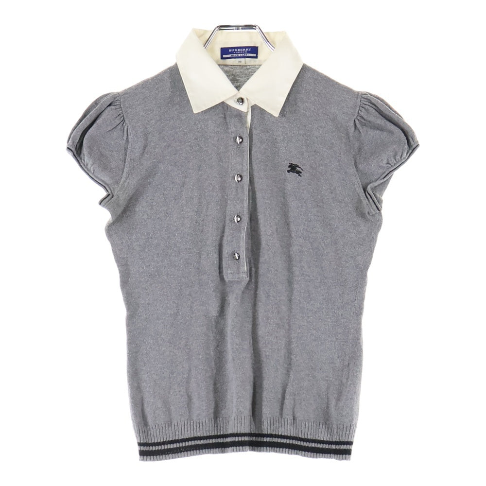 BURBERRY BLUE LABEL(バーバリーブルーレーベル) ワンポイントロゴ刺繍 バックプリント ギャザースリーブ コットンニット 半袖ポロシャツ グレー レディース