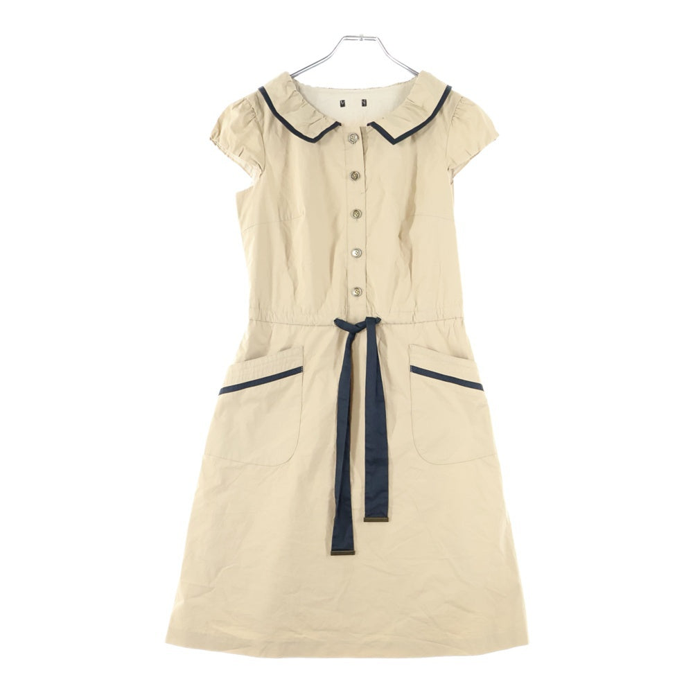 オンワード樫山(オンワードカシヤマ) オンワード樫山 コットンナイロン ギャザースリーブ 半袖 ワンピース ベージュ レディース