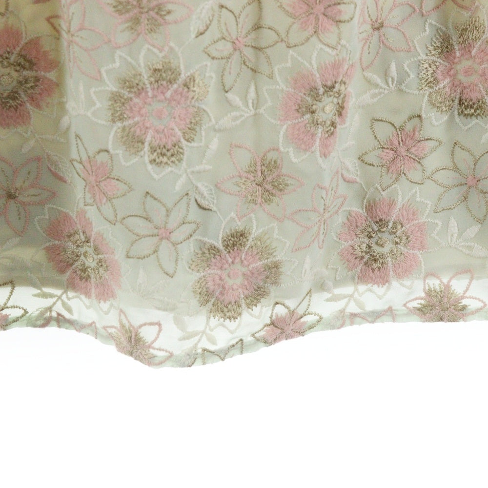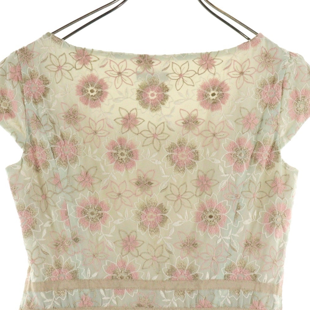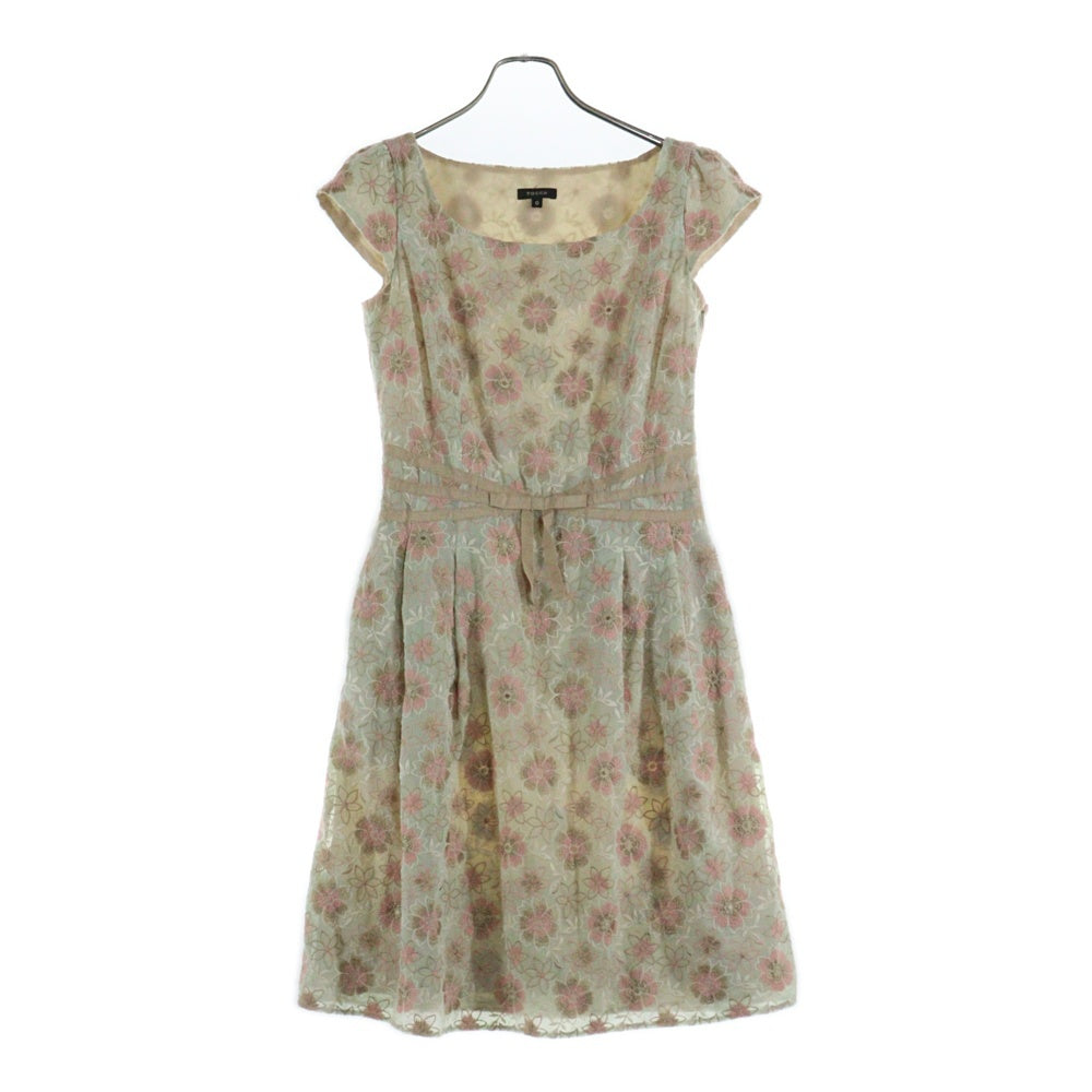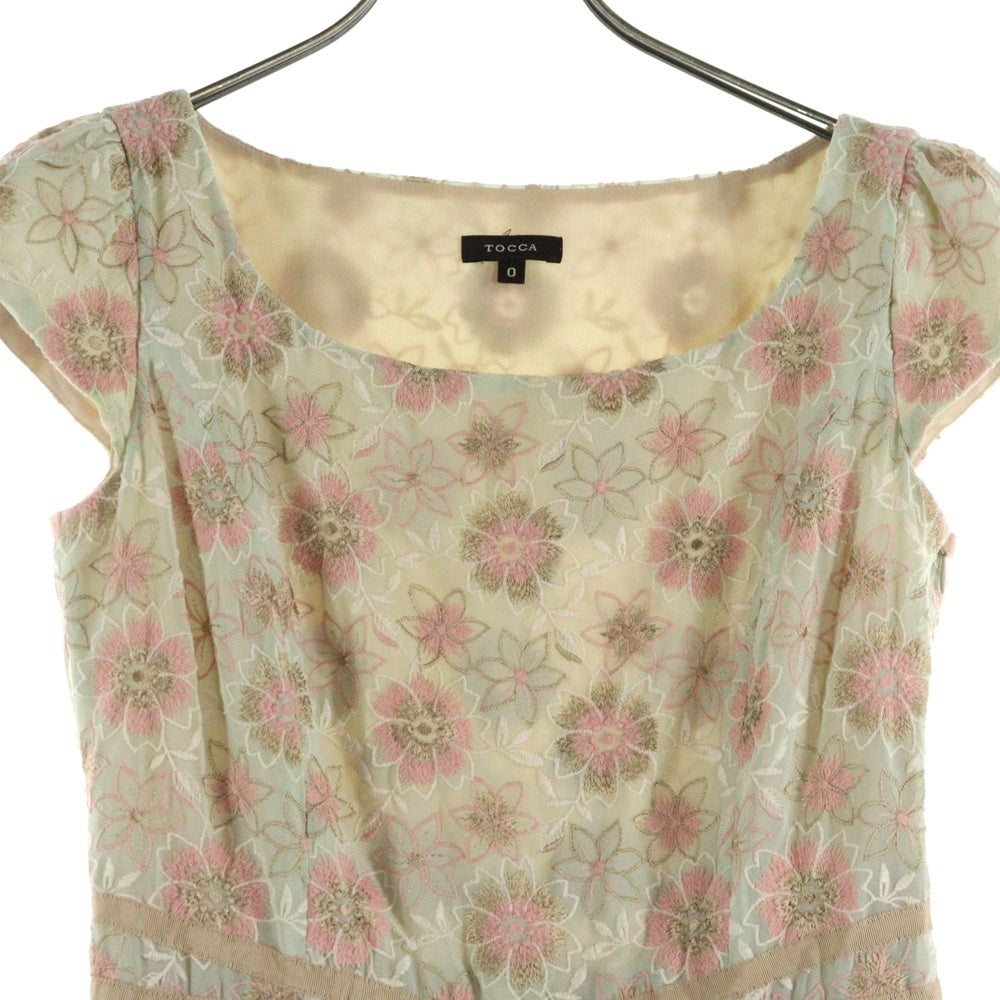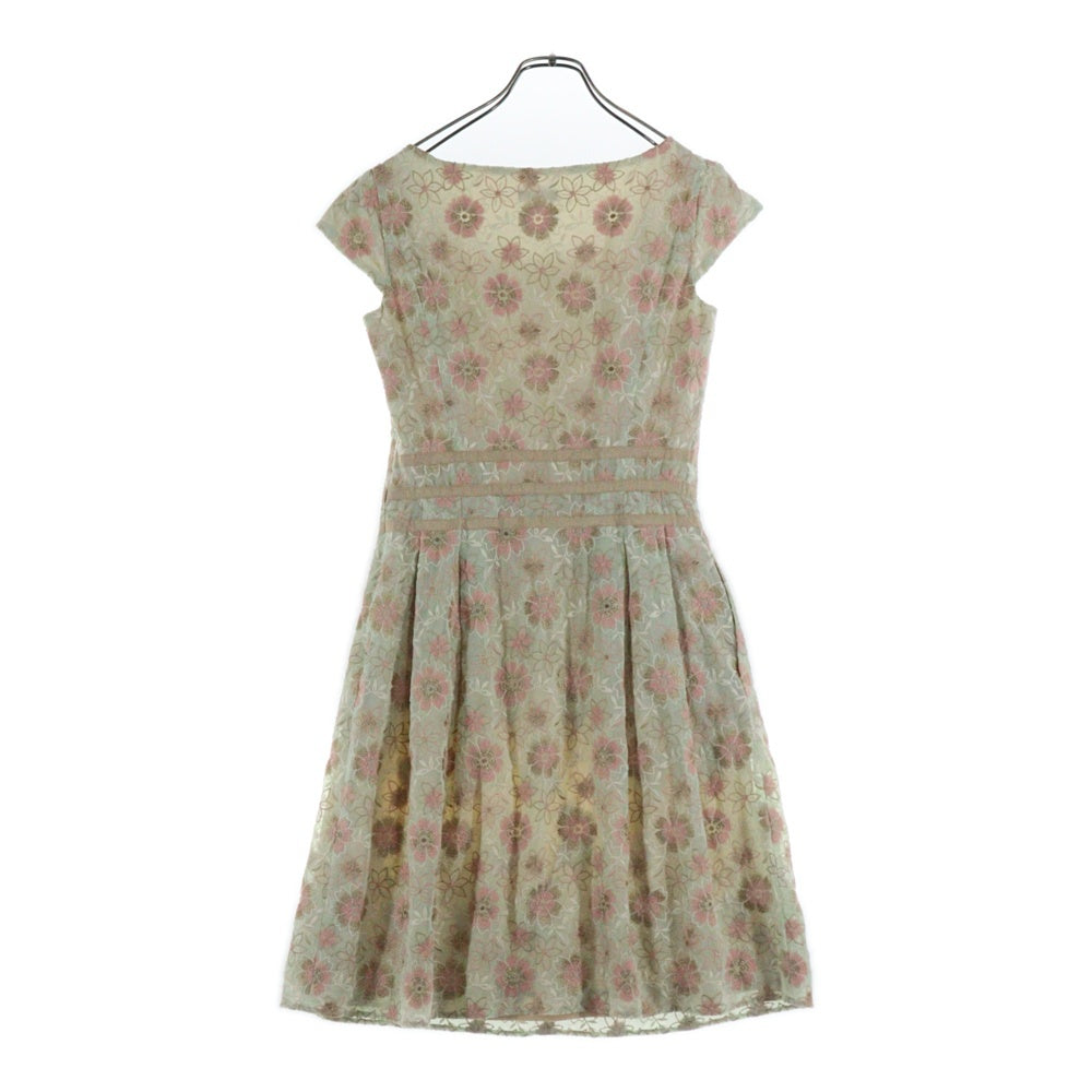 TOCCA(トッカ) フラワー総柄刺繍 リボン ギャザースリーブ ミディアムワンピース ライトグリーン/ピンク レディース