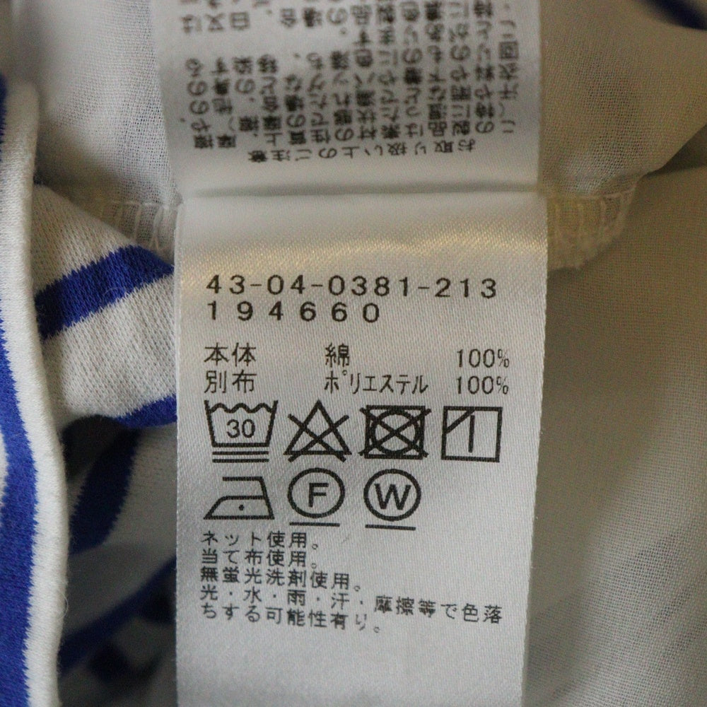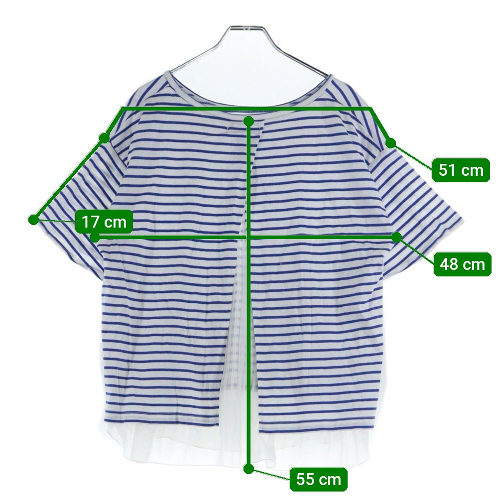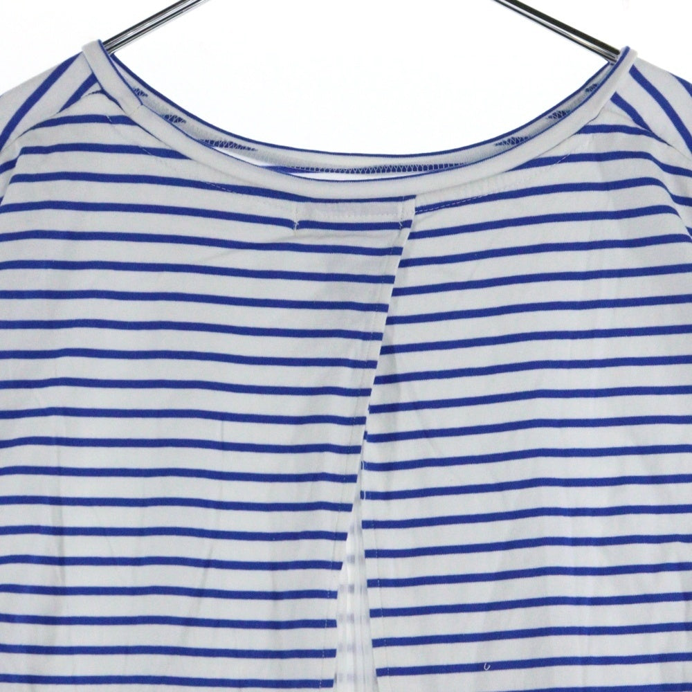 BEAMS HEART(ビームス ハート) マリンボーダー総柄 バックスリット シアープリーツ レイヤード 半袖Tシャツ カットソー ホワイト/ブルー レディース