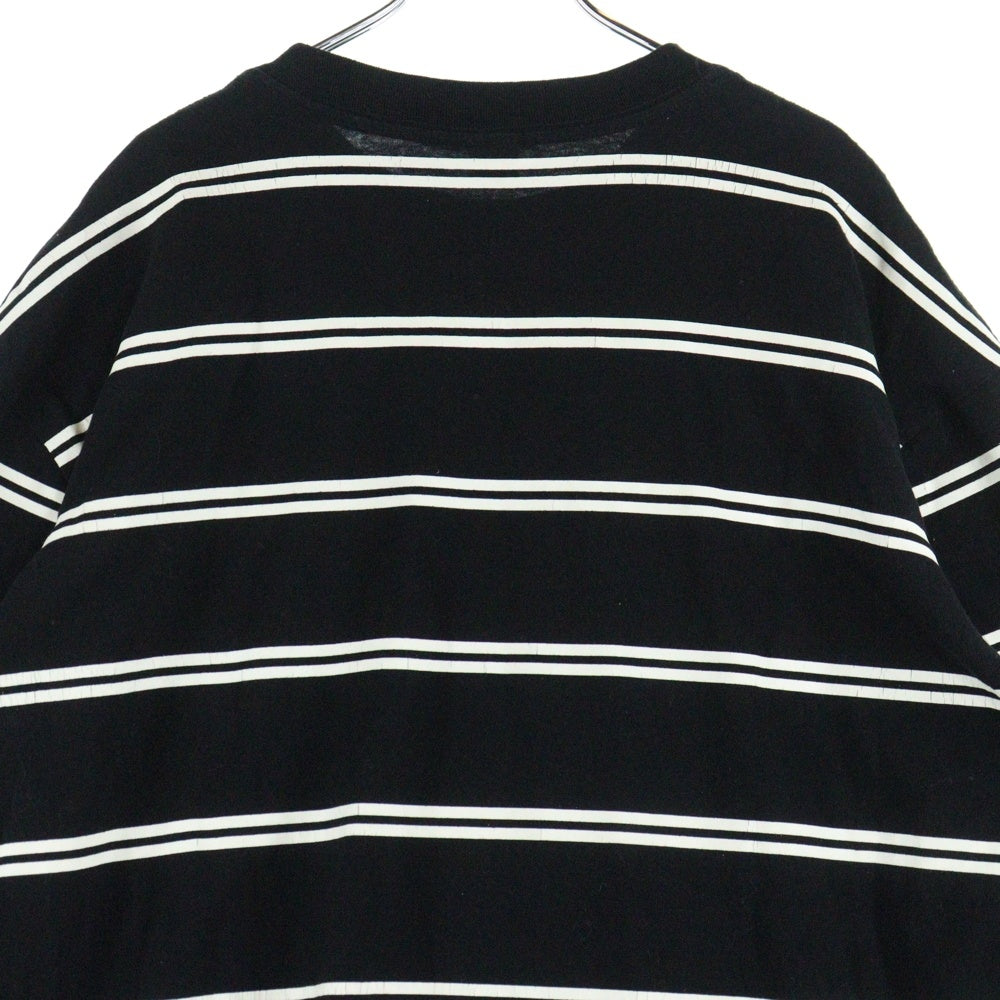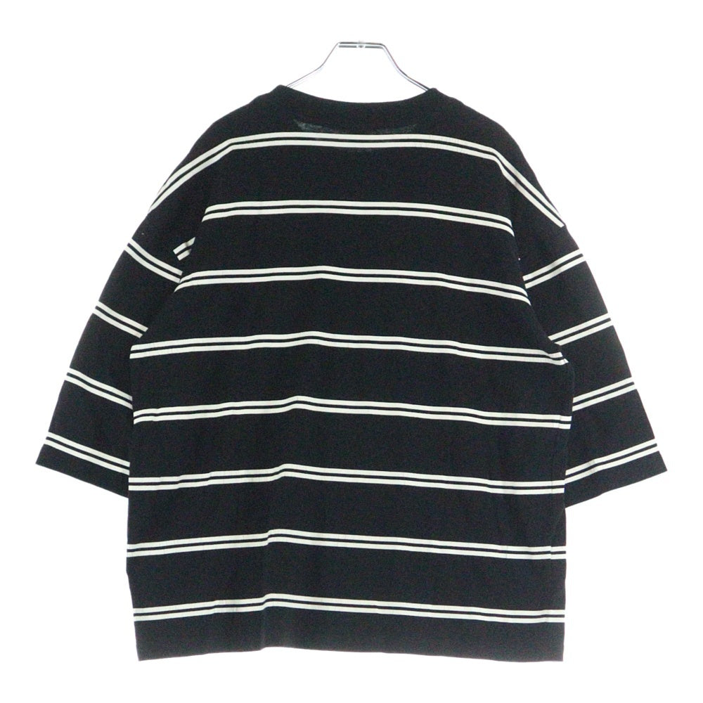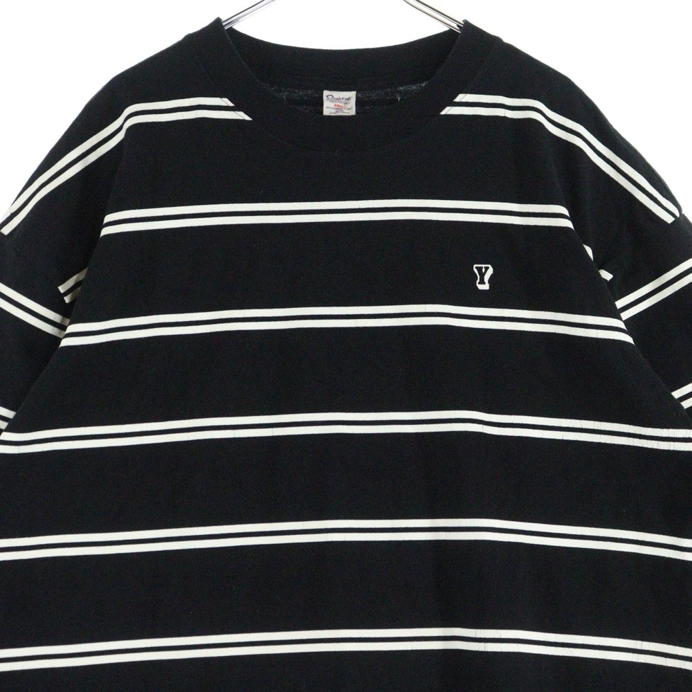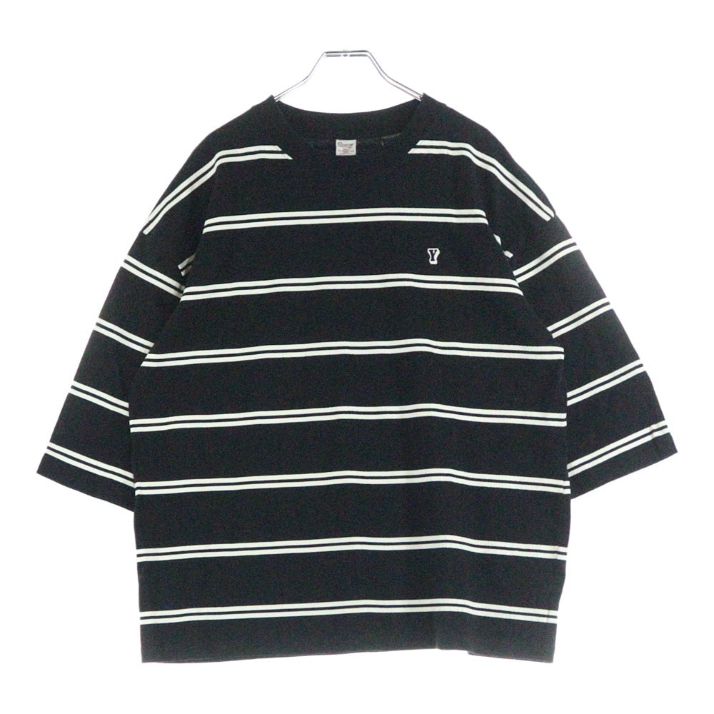 Purple&Yellow(パープルアンドイエロー) ボーダー総柄 Yロゴプリント クルーネック 半袖Tシャツ ブラック/ホワイト