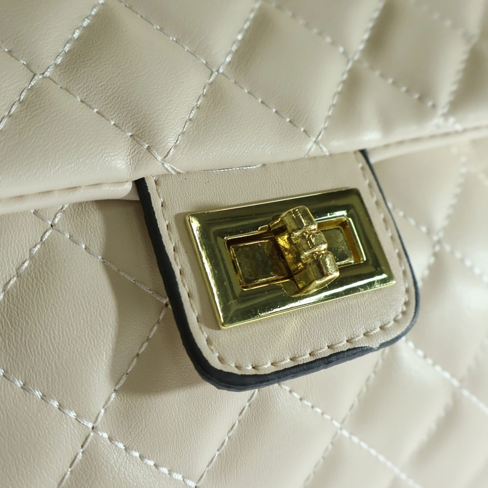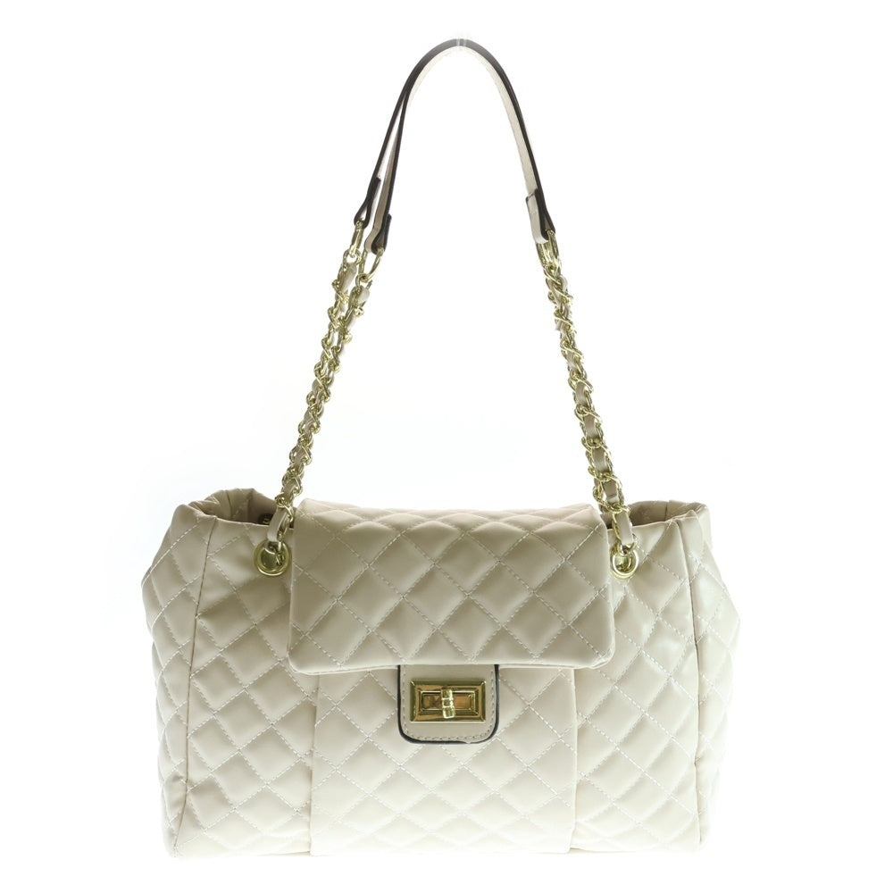 NO BRAND(ノーブランド) フェイクレザー ターンロック キルティング チェーンショルダーバッグ ゴールド金具 ホワイト