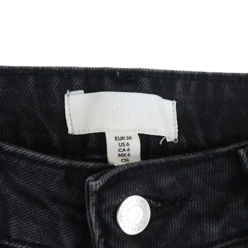 H&M(エイチアンドエム) ウォッシュ加工 テーパード デニムパンツ ブラック レディース