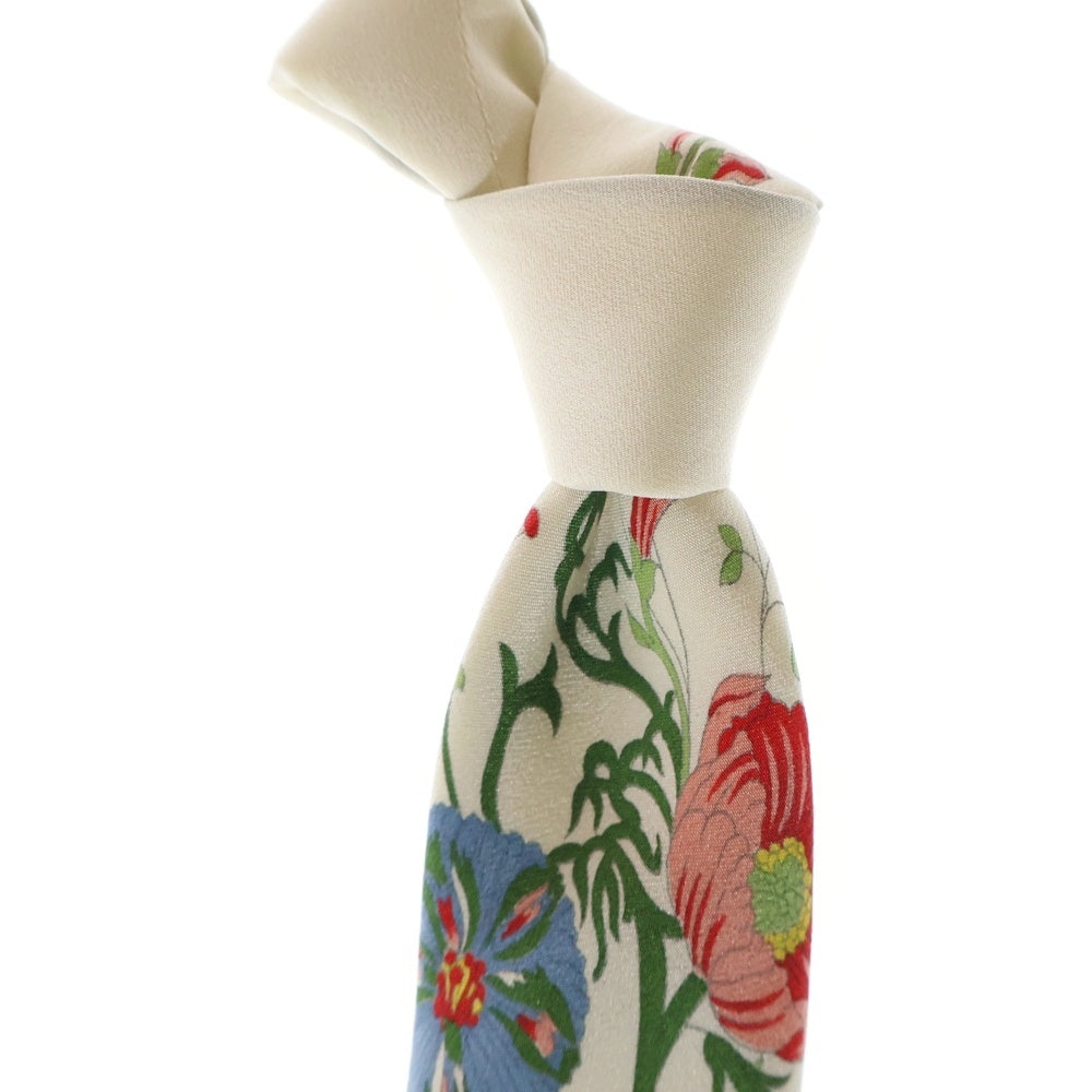 GUCCI(グッチ) フラワー総柄プリント ロゴ シルク ネクタイ ホワイト/ネイビー