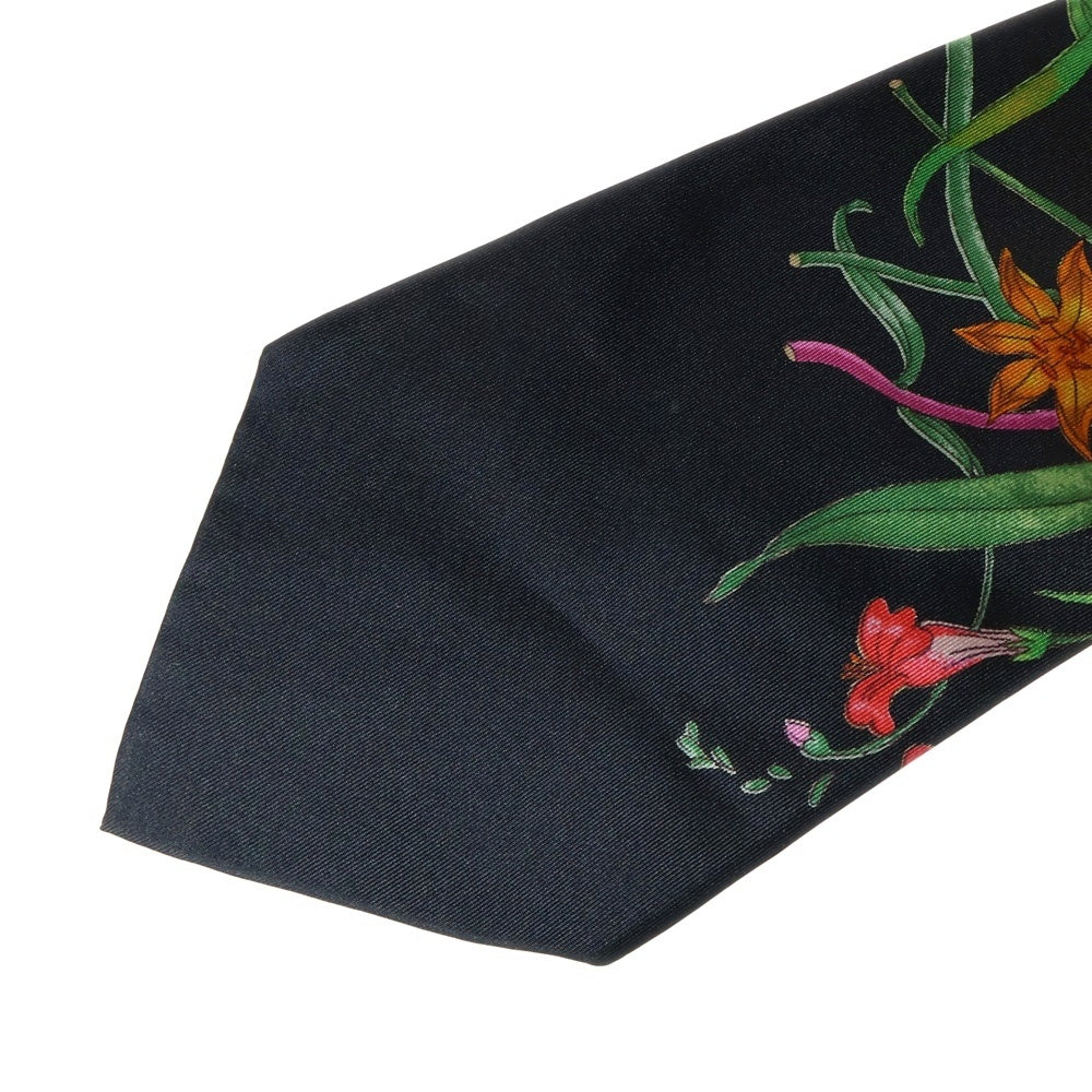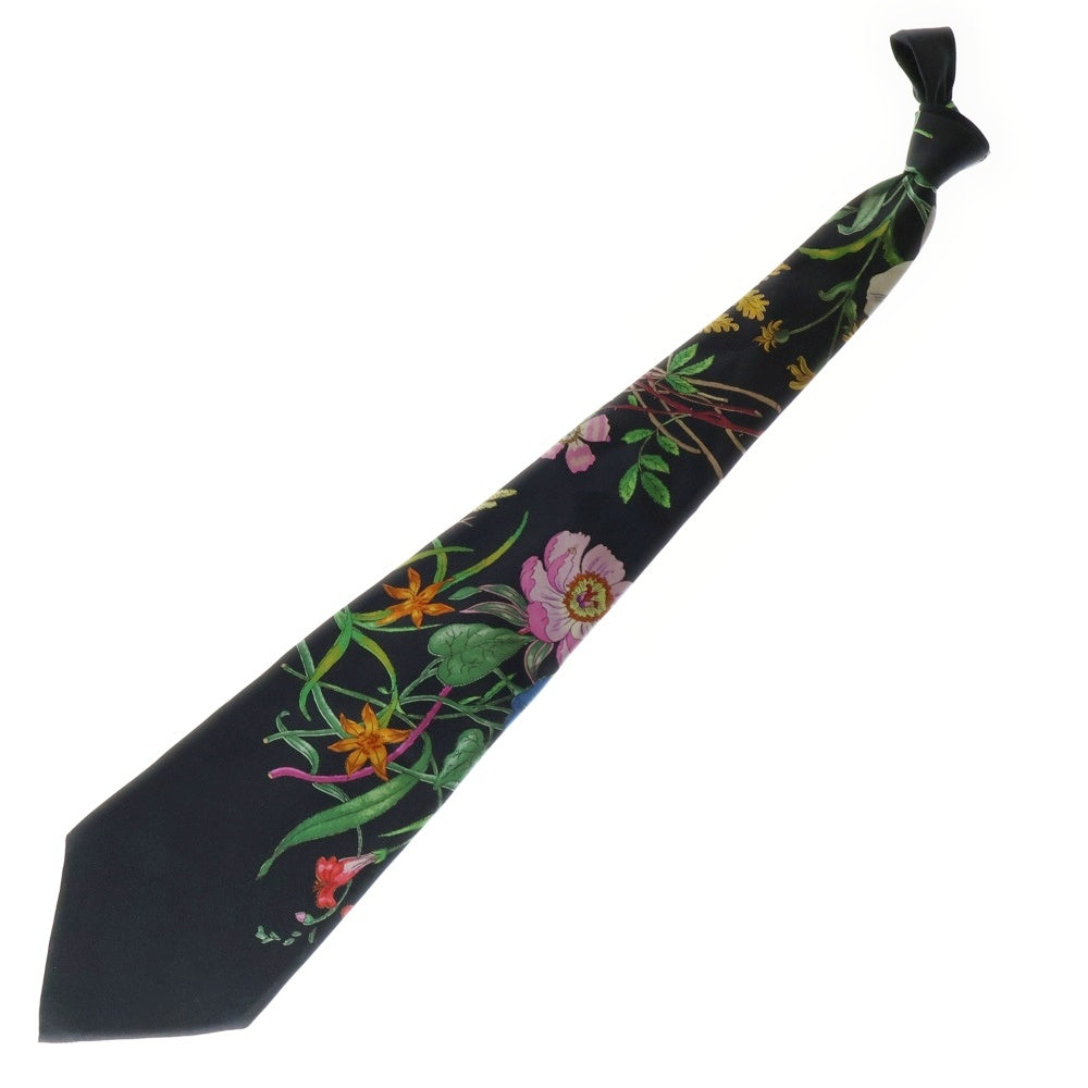 GUCCI(グッチ) フラワー総柄プリント シルク ネクタイ ブラック