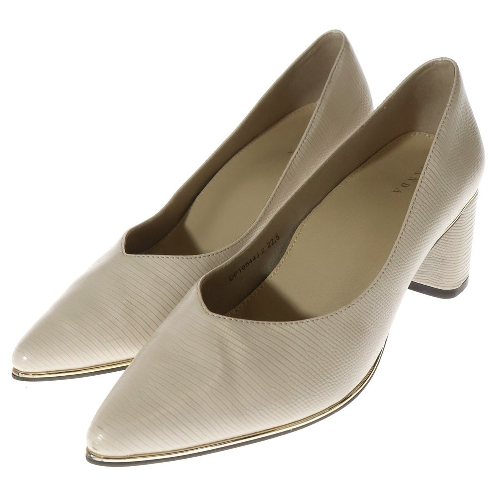 RANDA(ランダ) リザード型押し エンボスレザー ヒール パンプス シューズ ベージュ レディース〇