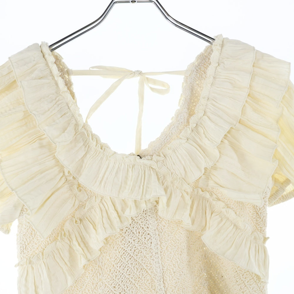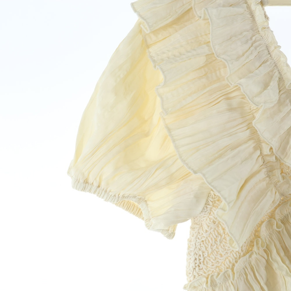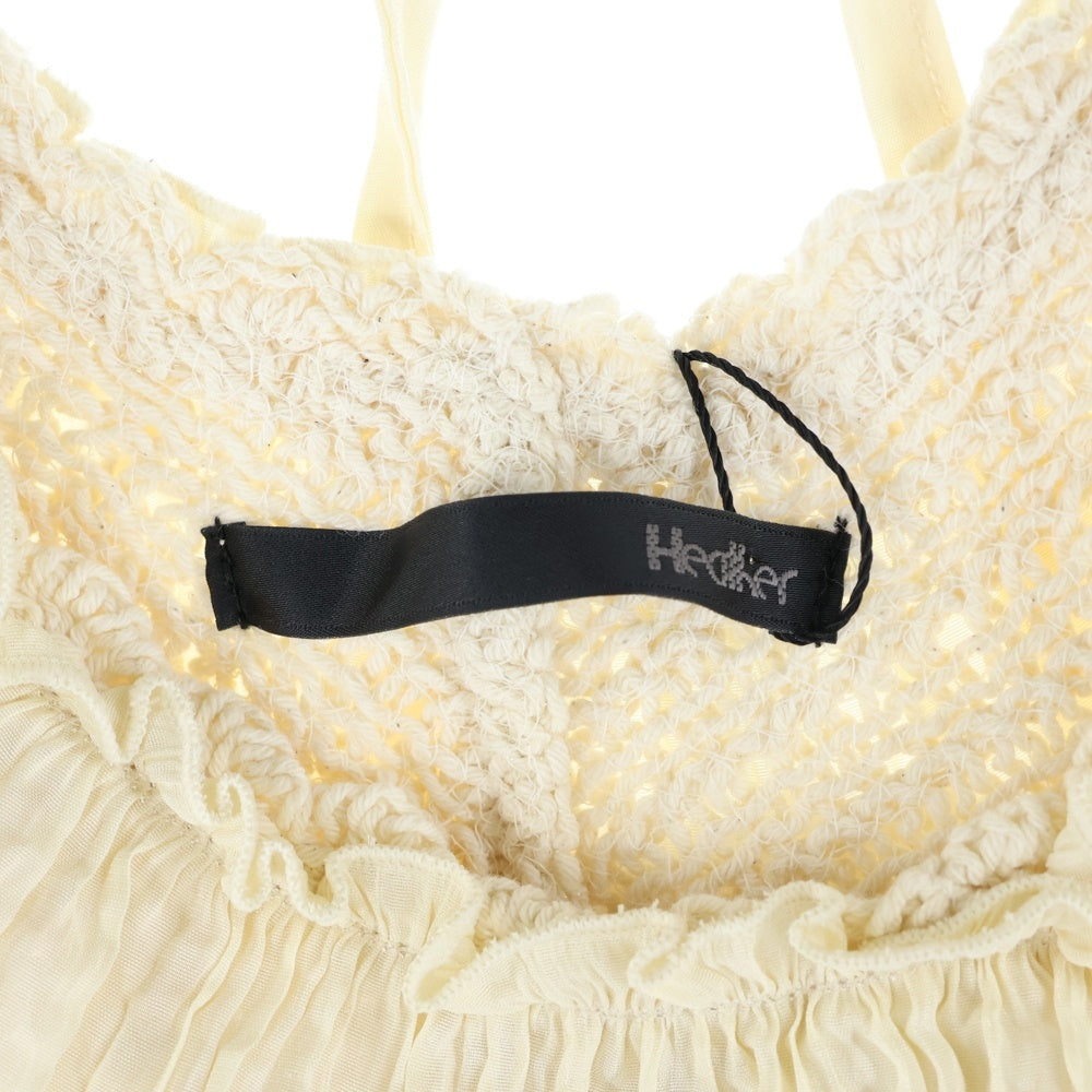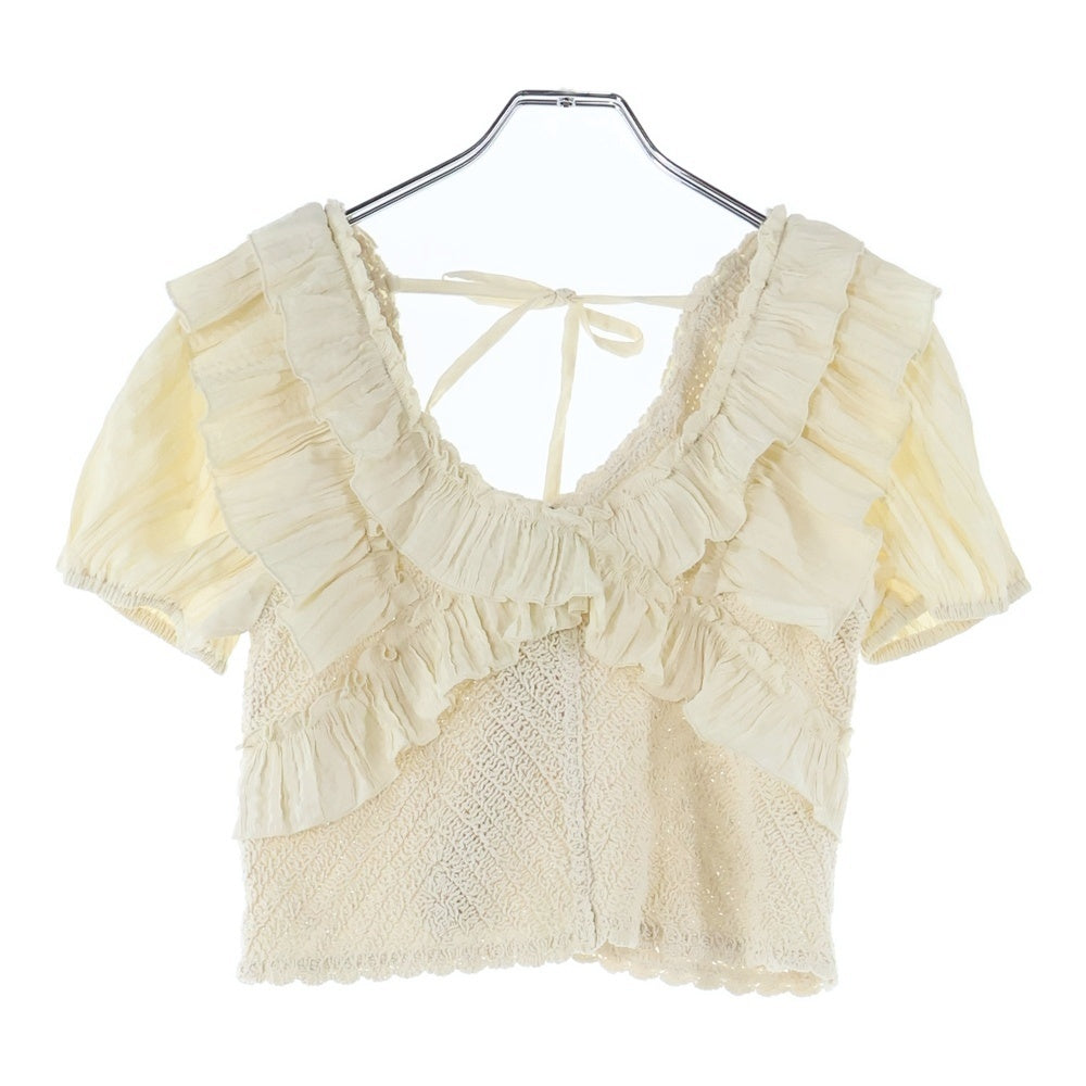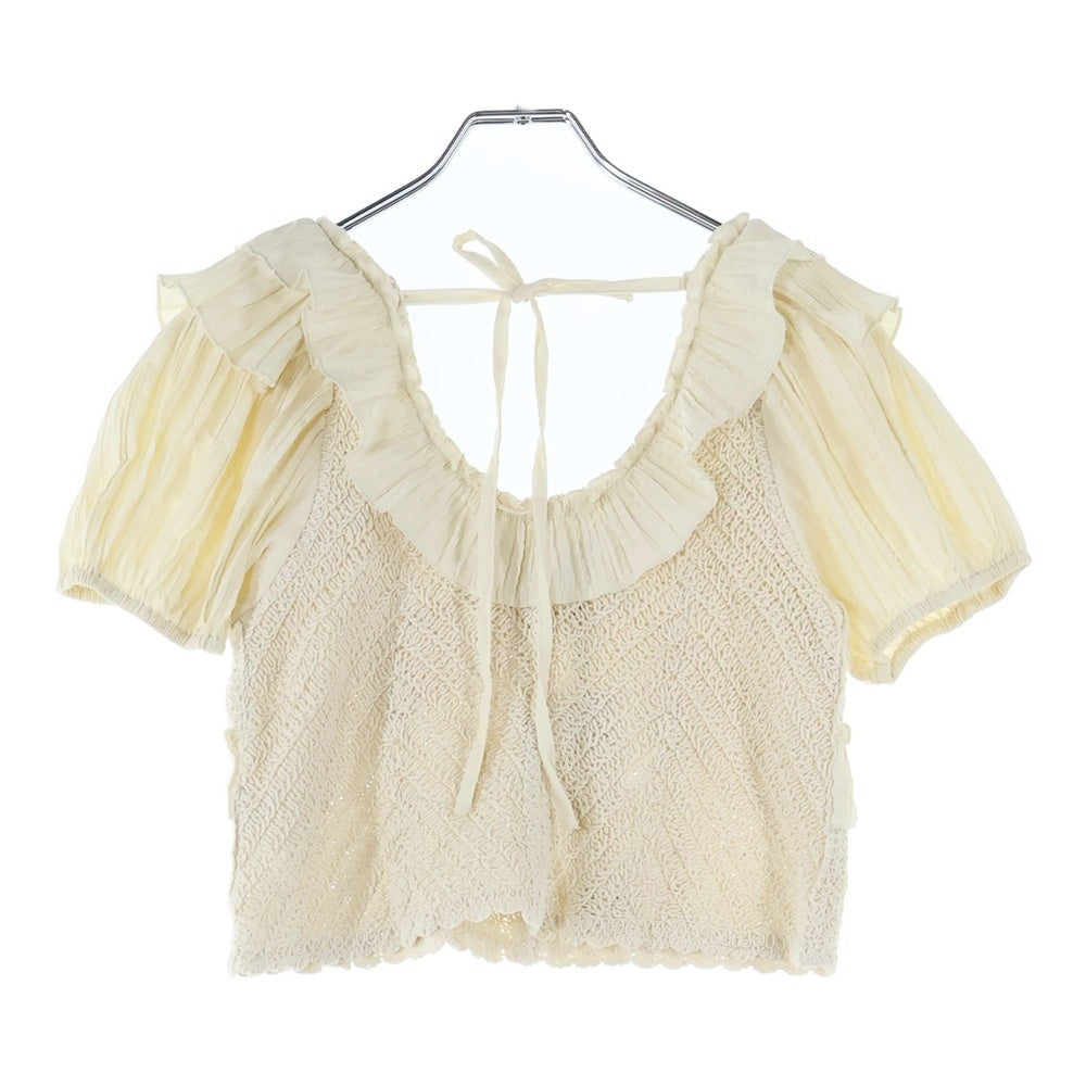 Heather(ヘザー) Heather ヘザー ギャザー デザイン ニット切り替え 半袖 トップス アイボリー レディース