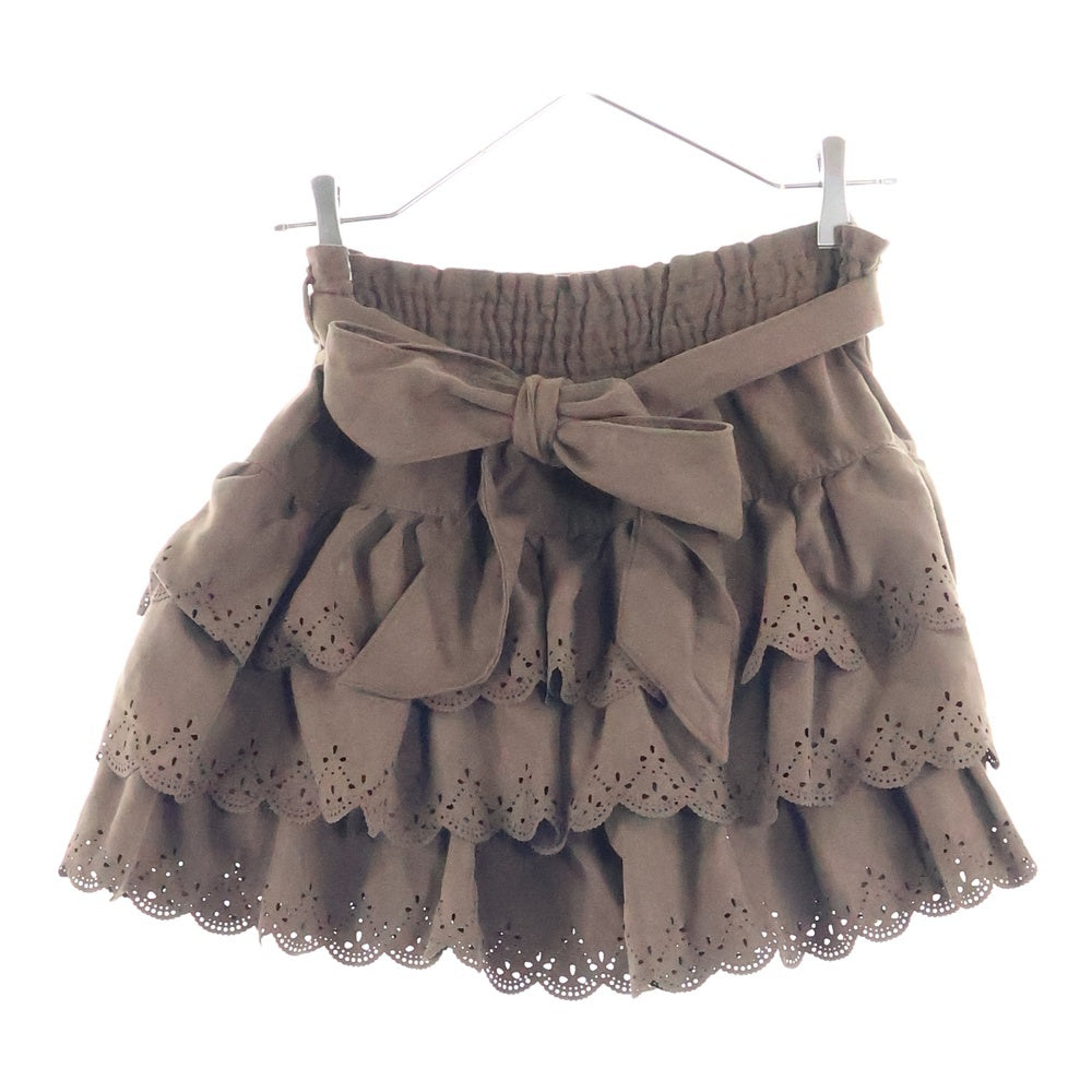 NO BRAND(ノーブランド) ARROW アロー フェイクスウェード パンチング レース柄 ティアード ミニスカート ブラウン レディース