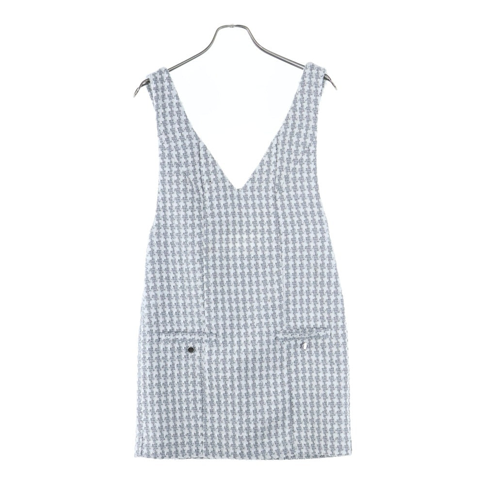 snidel(スナイデル) チェック総柄 ラメ ツイード ノースリーブ ミニ ジャンパースカート ワンピース シルバー/ホワイト レディース