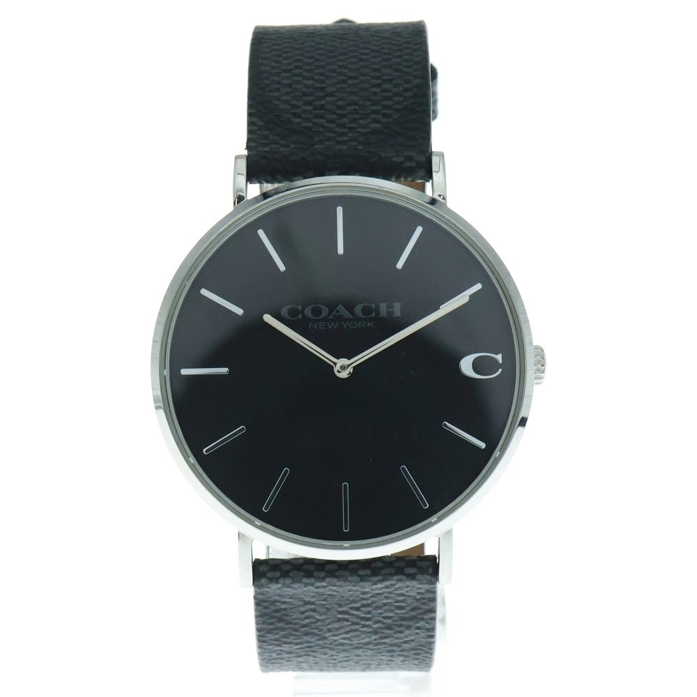 COACH(コーチ) 黒文字盤 クォーツウォッチ レザーベルト 腕時計 ブラック/シルバー