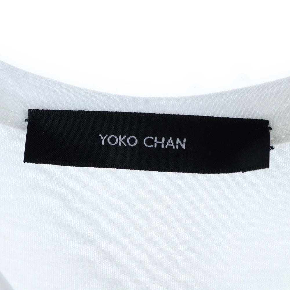 YOKO CHAN(ヨーコ チャン) バックティアード リヨセル コットン 切り替え クルーネック 半袖Tシャツ カットソー ホワイト レディース YCT-125-058