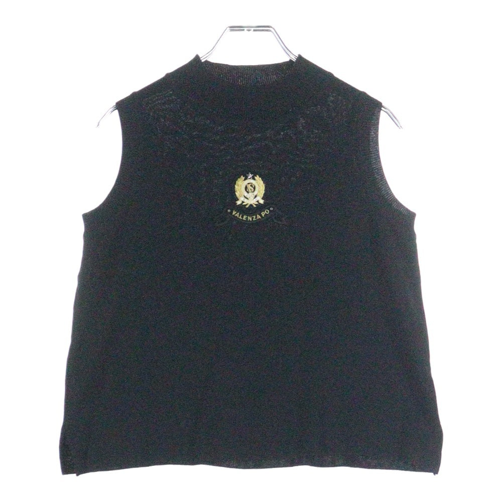 VALENZA PO(ヴァレンザポー) エンブレム ロゴワッペン レーヨン ナイロン ノースリーブ モックネック ニット セーター ベスト ブラック レディース